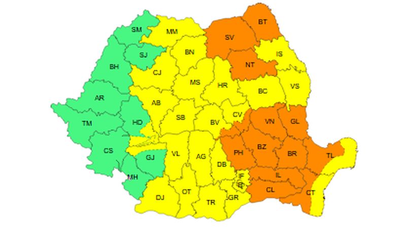 De la ora 15:00 a aceleiași zile de joi și până joi noaptea, la ora 03:00, va fi valabil și un Cod portocaliu de instabilitate atmosferică accentuată.