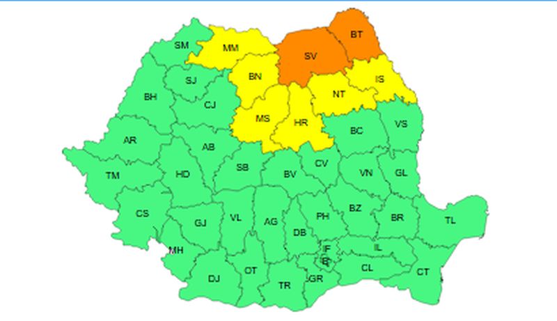 Iar de joi, la ora 18:00, și până pe 18 iulie, ora 03:00, este în vigoare și un Cod portocaliu de averse importante cantitativ: „În județele Suceava, Botoșani și Neamț vor fi averse importante cantitativ și se vor acumula 30…40 l/mp și izolat peste 60 l/mp”.