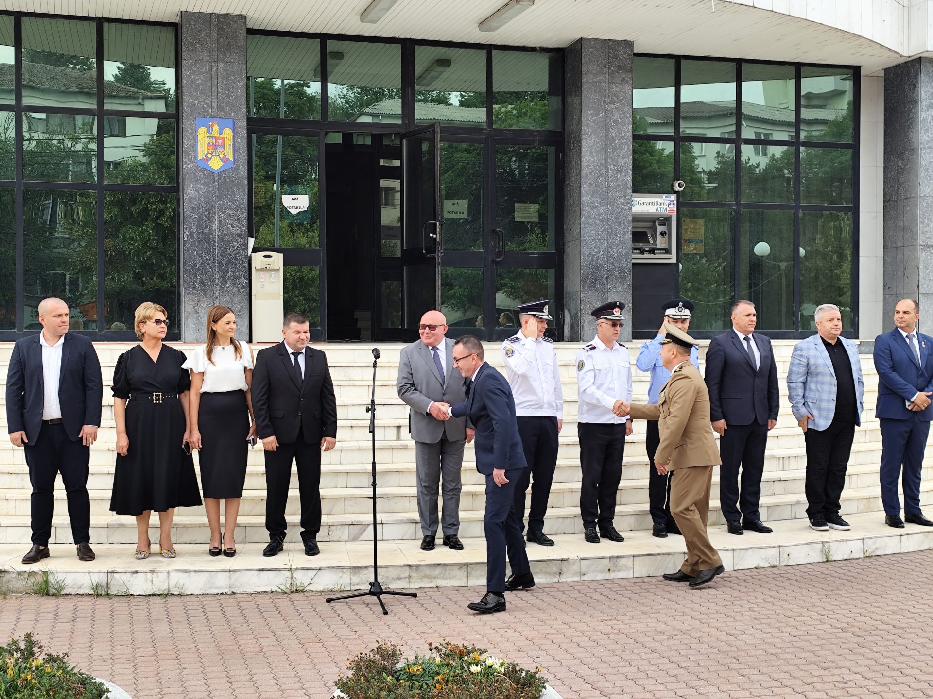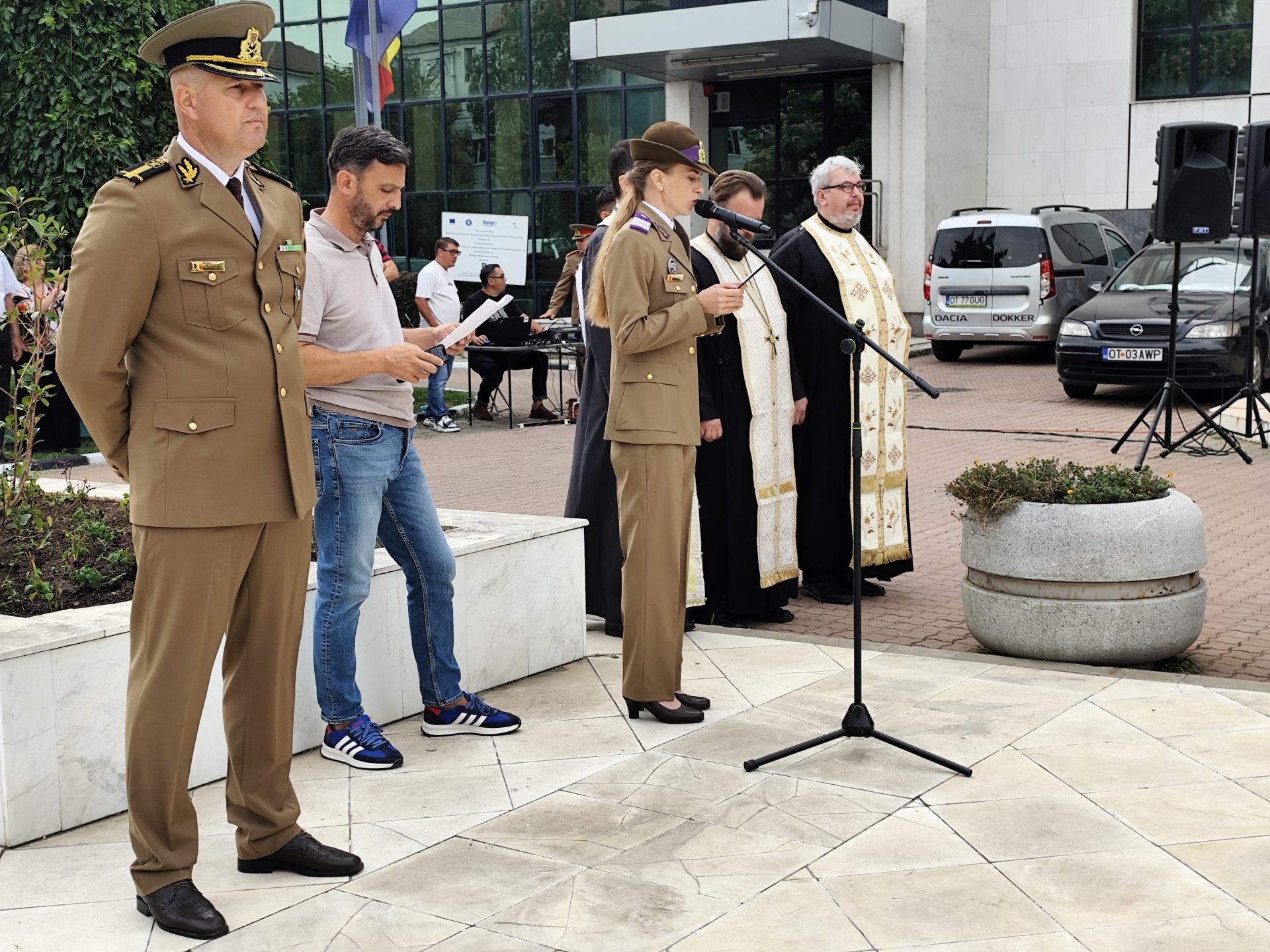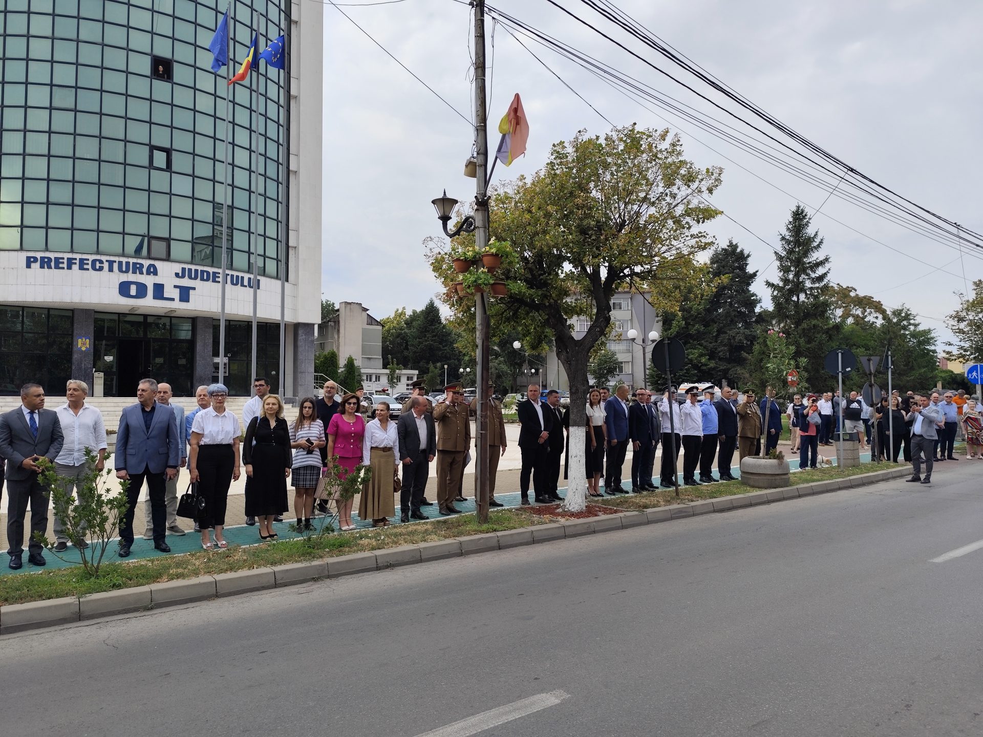 Printre autoritățile locale și județene prezente s-au aflat prefectul județului Cosmin Floreanu, subprefectul de Olt Ștefan Nicolae, deputatul PSD de Olt Marius Iancu, Adrian Mihai Adrian Țiu, deputat SOS România de Olt, Ionuț Ivan, vicepreședinte al Consiliului Județean Olt, reprezentanți ai instituțiilor teritoriale ale Ministerului Afacerilor Interne și Ministerului Apărării Naționale, dar și directori ai mai multor instituții deconcentrate și câțiva membri de partid. În privința Primăriei municipiului Slatina, aceasta nu a fost reprezentată nici de primarul Mario De Mezzo sau de viceprimarii Mădălina Văle și Valentin Mihalache, ci de unii șefi de servicii din cadrul instituției publice.