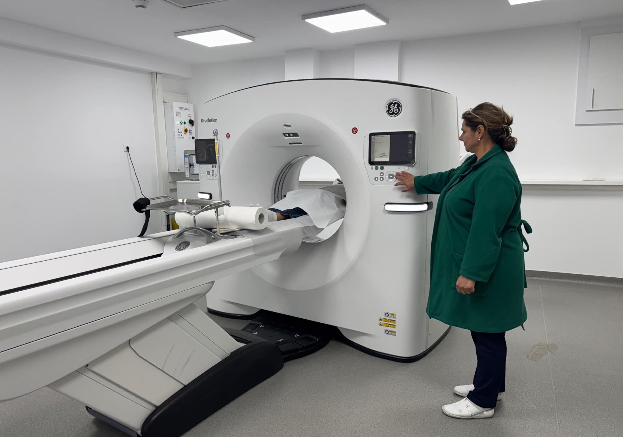 Noul computer tomograf din Ambulatoriul Spitalului Județean de Urgență Slatina, folosit de primul pacient