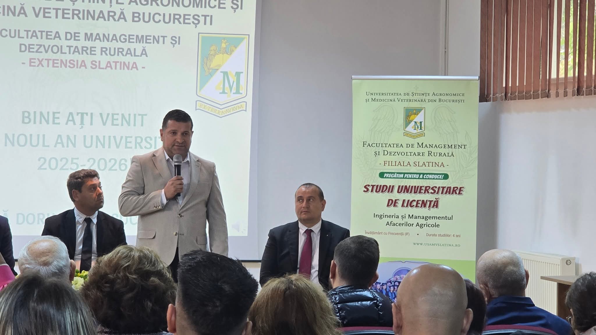 Facultatea de Management și Dezvoltare Rurală – Extensia Slatina a Universității de Științe Agronomice și Medicină Veterinară București de pe strada Strehareți, nr. 150, șia deschis din nou porțile joi, 2 octombrie, începând cu ora 11:00, când în Sala de Festivități a instituției de învățământ a avut loc festivitatea de deschidere a anului universitar 2025 – 2026.