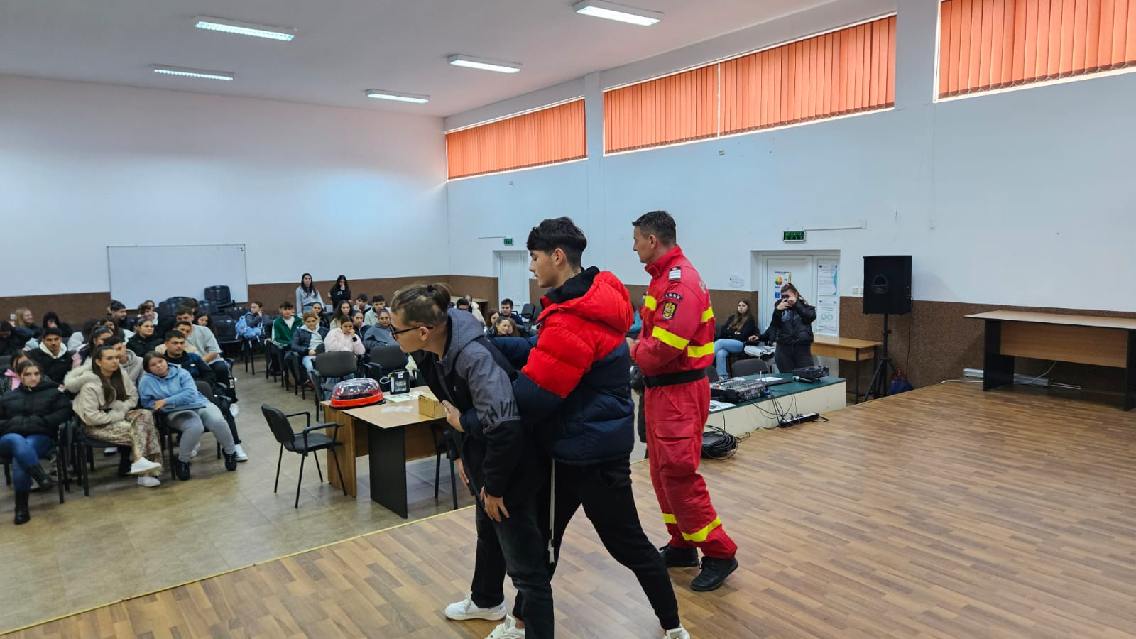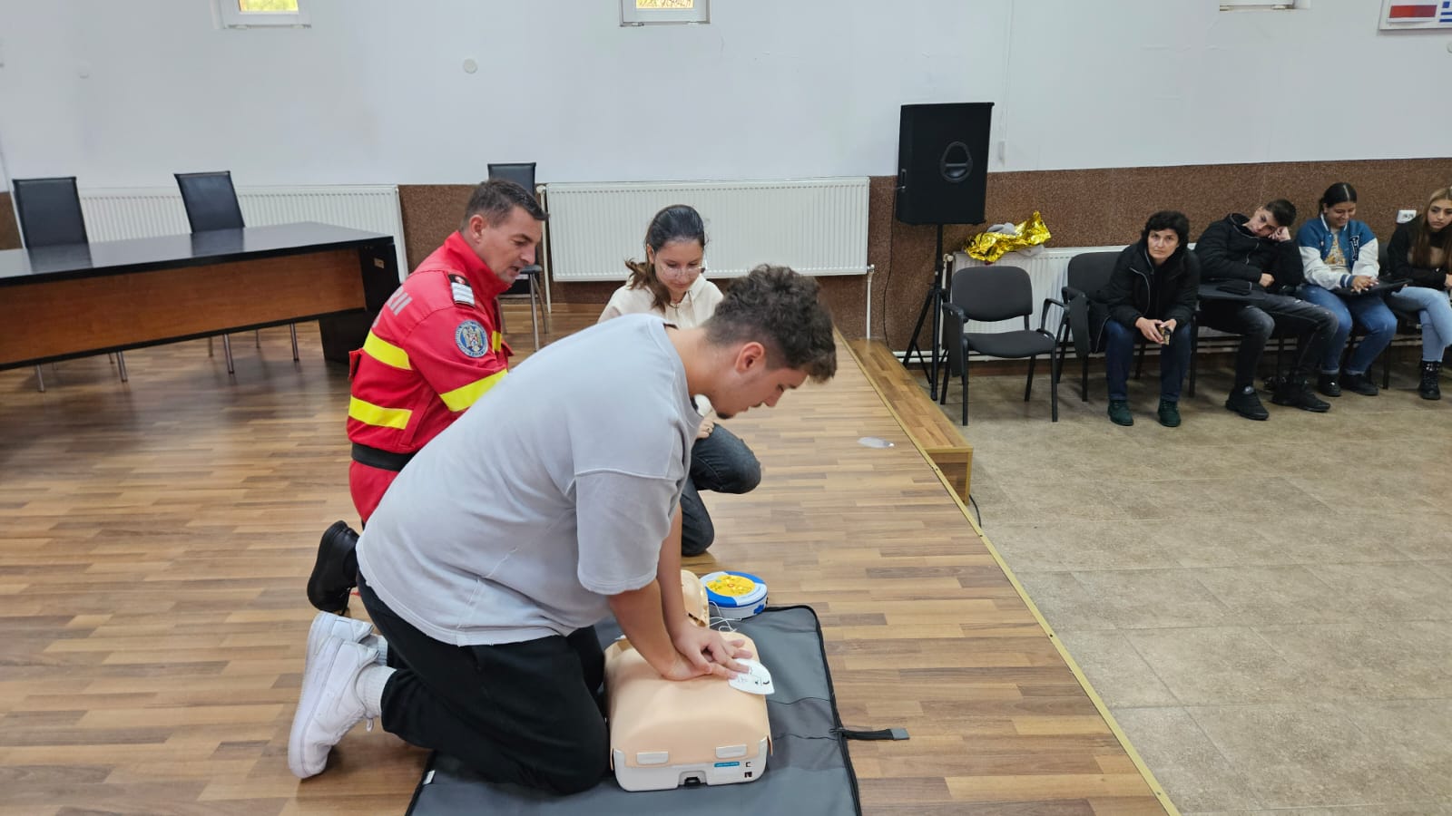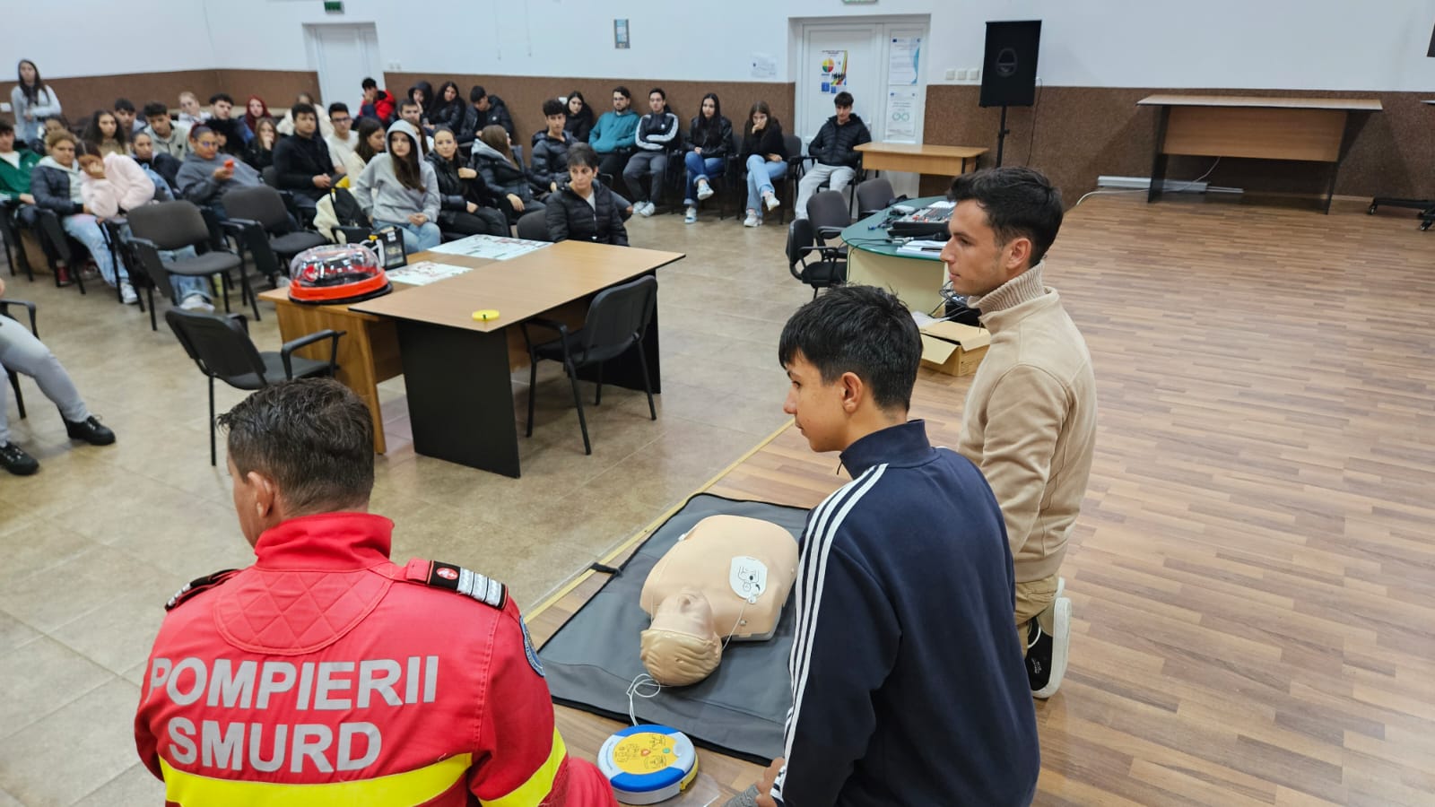 Cătălin Stănciuleasa, asistent medical principal în cadrul SMURD Olt, a fost cel care le-a transmis liceenilor de la Economic informații esențiale despre modul de intervenție în cazul unei persoane aflate în stop cardio-respirator – de la recunoașterea simptomelor până la utilizarea defibrilatorului semiautomat, chiar și de către persoane fără pregătire medicală.