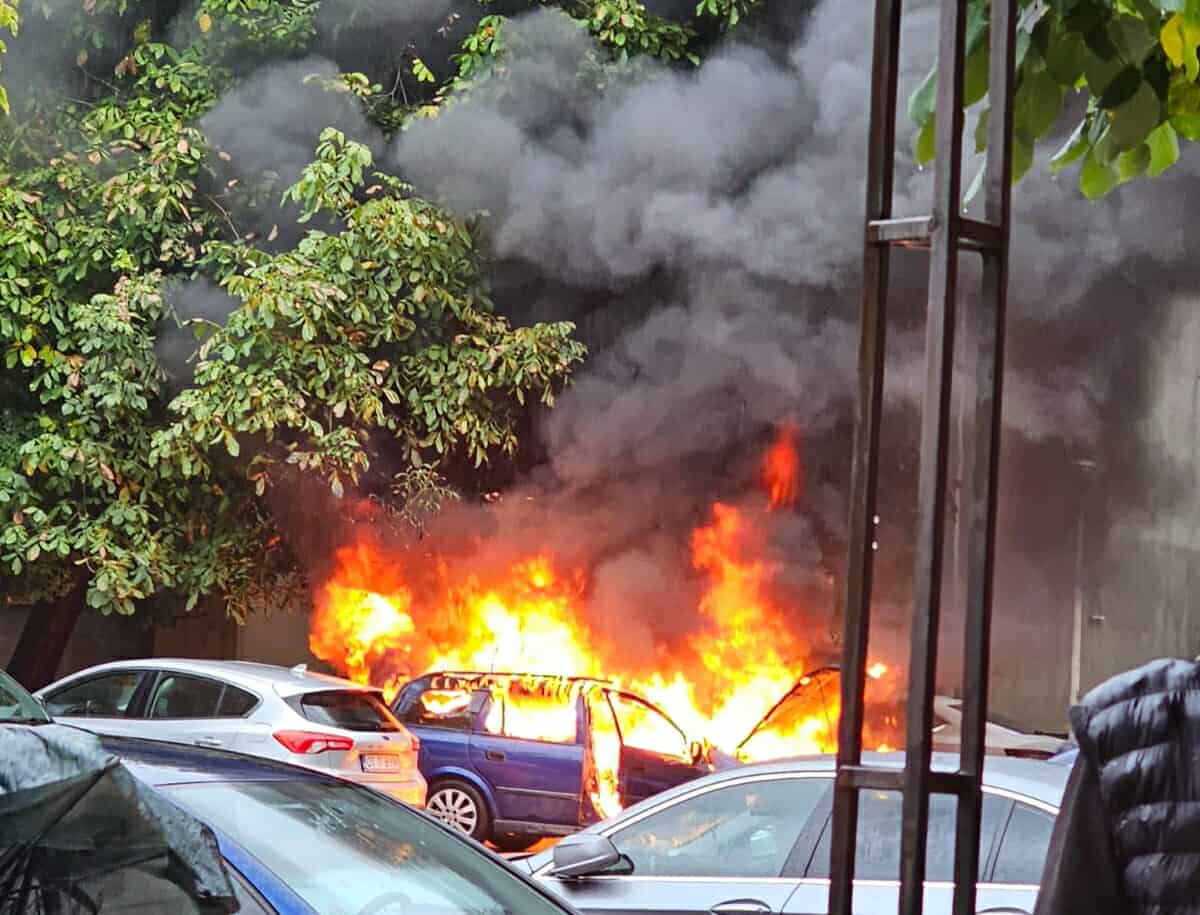 VIDEO. Patru autoturisme afectate în urma unui incendiu izbucnit la o mașină aflată într-o parcare din Slatina