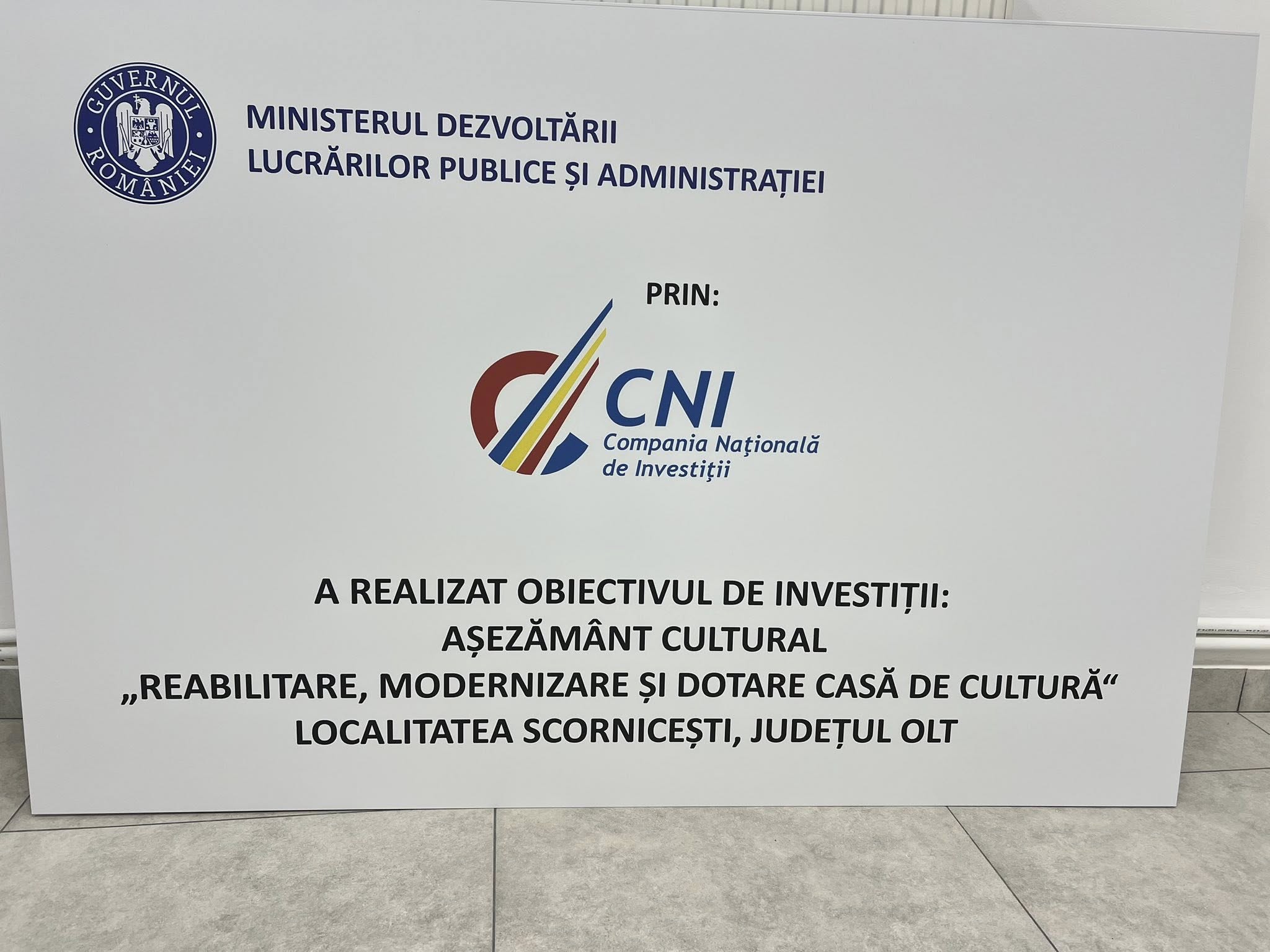 Miercuri, 15 octombrie 2025, este o zi de mare bucurie pentru comunitatea din orașul Scornicești. Daniel Tudor, primar al urbei, anunță că s-au finalizat și recepționat lucrările de reabilitare si modernizare a Casei de Cultură, un proiect realizat de Ministrul Dezvoltării, Lucrărilor Publice și Administrației, prin Compania Națională de Investiții. Așadar, instituția culturală a fost redeschisă pentru oameni, tradiție și viitor.