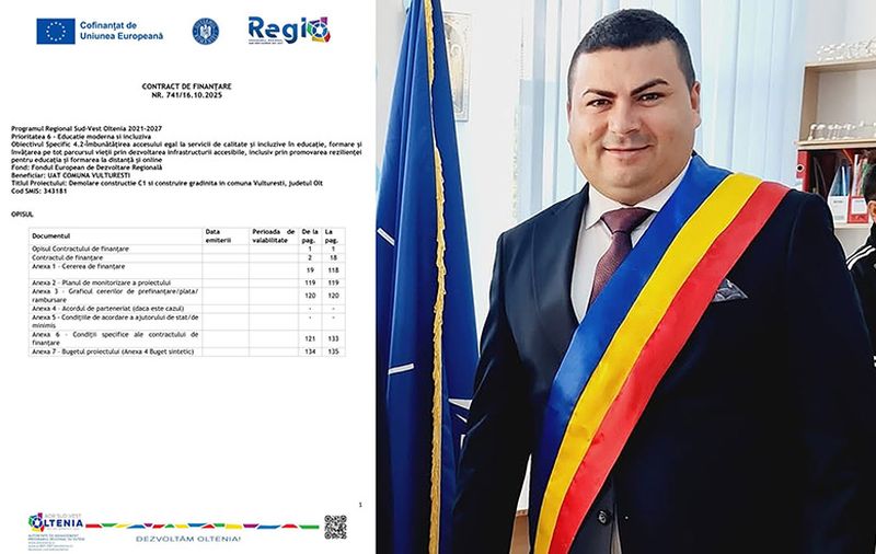„Ce ieri părea doar o promisiune, azi incepe să prindă contur realitatea în care comuna Vulturești va avea propria grădiniță cu program prelungit. Astăzi (joi, 16 octombrie 2025 n.r.), am semnat contractul de finanțare ce presupune construirea grădiniței cu program prelungit, atrăgând astfel o investiție europeană de 7 milioane de lei, nerambursabili. Nu vom construi doar o clădire, vom construi un «acasă» modern pentru primii pași ai micuților noștri, pentru că viitorul începe aici, aproape de casă, iar fiecare părinte merită liniștea că micuțul lui se află/crește/învață într-un mediu sigur, modern și sănătos”, a spus edilul.