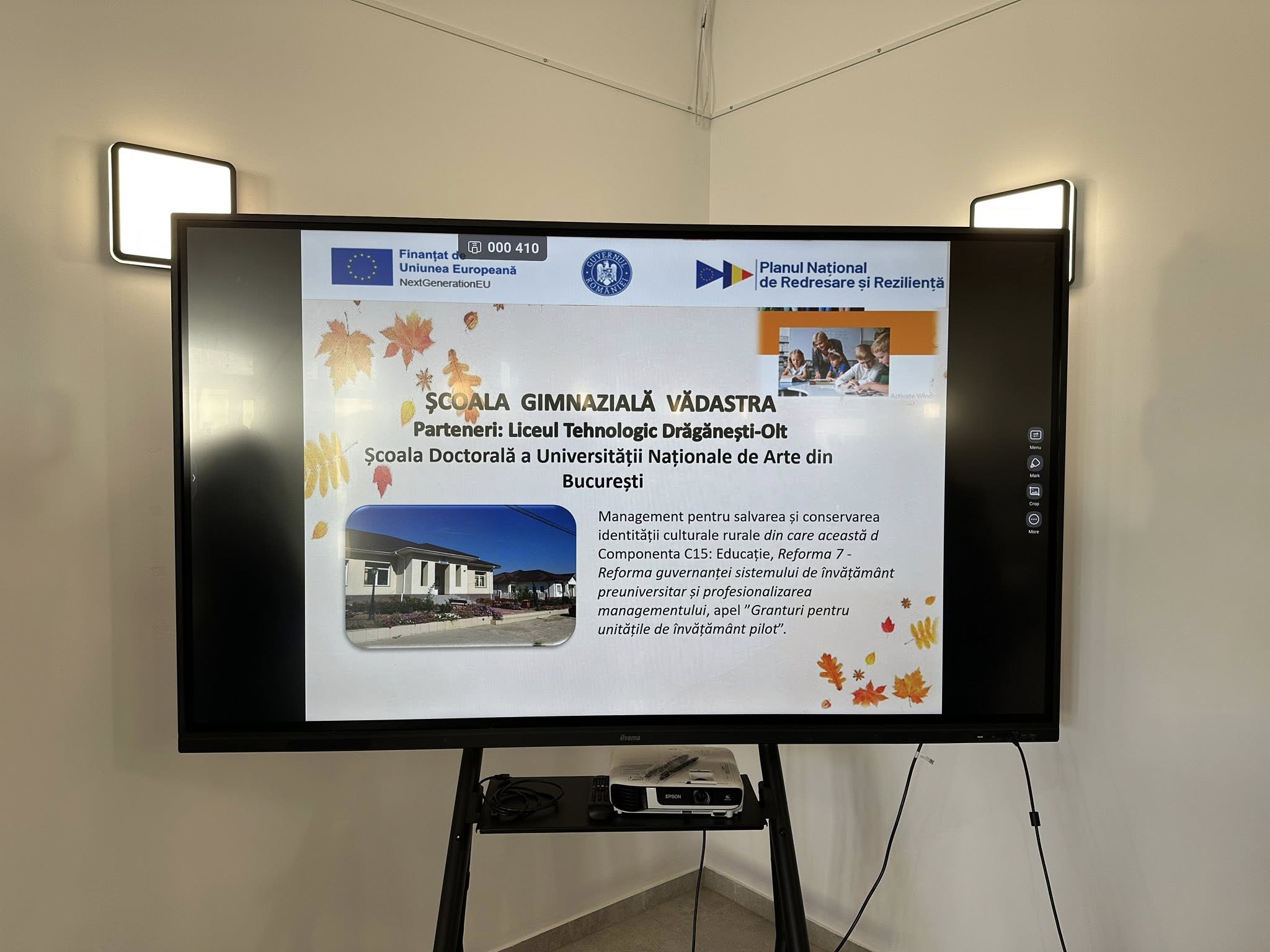 200.000 de lei este valoarea investiției al cărui beneficiar este Școala Gimnazială Vădastra, iar parteneri Școala Doctorală a Universității Naționale de Arte din București și Liceul Tehnologic Drăgănești Olt.