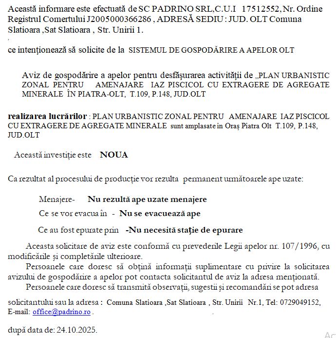 AcasăAdvertorial octombrie 24, 2025 Evdo FacebookInstagramTwitterYoutube Ultimele Articole Actualitate Aproximativ 7.900 de șomeri în județul Olt, la sfârșitul lunii septembrie. Cei cu vârsta de peste 55 de ani sunt cei mai mulți Eveniment Țeavă de gaze fisurată pe Aleea Înfrățirii din Slatina, în timp ce se efectuau lucrări la rețeaua de apă. Nu a fost necesară evacuarea... Actualitate Activitatea de voluntariat desfășurată de ISU Olt în cadrul Programului „Salvator din pasiune”, prezentată de colonelul Tănase în fața prefectului Floreanu Advertorial ANUNȚ INIȚIERE PUZ INFORMARE Acțiune FacebookTwitterPinterestWhatsApp - Advertisement - - Advertisement - octombrie 24, 2025 Evdo FacebookInstagramTwitterYoutube Citește și Advertorial ANUNȚ INIȚIERE PUZ Advertorial ANUNȚ INTENȚIE DE ELABORARE PUZ Advertorial Anunţ public Advertorial ANUNȚ Advertorial Anunţ public Ultimele știri Actualitate Aproximativ 7.900 de șomeri în județul Olt, la sfârșitul lunii septembrie. Cei cu vârsta de peste 55 de ani sunt cei mai mulți Eveniment Țeavă de gaze fisurată pe Aleea Înfrățirii din Slatina, în timp ce se efectuau lucrări la rețeaua de apă. Nu a fost necesară evacuarea... Actualitate Activitatea de voluntariat desfășurată de ISU Olt în cadrul Programului „Salvator din pasiune”, prezentată de colonelul Tănase în fața prefectului Floreanu Advertorial ANUNȚ INIȚIERE PUZ Nu pierdeți Național Nicușor Dan: E posibil ca forțând un salariu minim prea mare, anumite activități să devină necompetitive Național Rogobete: Spitalele vor trebui să instaleze camere și să înregistreze imagini video din interior Național Rogobete: Se lucrează la o regândire a atribuțiilor DSP-urilor. S-a pierdut total controlul administrativ și legislativ asupra acestora Eveniment Ziua Armatei Române, sărbătorită de zeci de autorități în Parcul Tineretului din Slatina, unde a fost dezvelit bustul generalului Eremia Grigorescu Politică Grindeanu referitor la o coaliţie a PSD cu AUR: Nu am discutat aşa ceva, exclud total