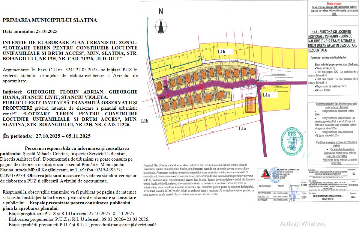 ANUNȚ INTENȚIE DE ELABORARE PUZ
