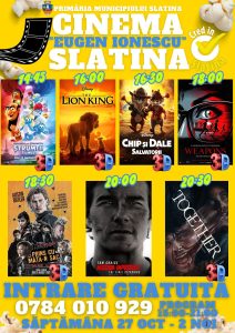 „Te așteptăm la cinema cu o nouă săptămână plină de filme spectaculoase pentru toate gusturile – de la animații pentru cei mici, până la acțiune, comedie și suspans pentru cei mari! Intrarea este gratuită, iar atmosfera… de neuitat!”, anunță reprezentanții instituției culturale.