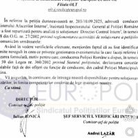 Potrivit aceleiași surse, în prezent, conform răspunsului primit din partea Inspectoratului General al Poliției Românr, șeful și adjunctul Poliției municipiului Slatina sunt cercetați disciplinar pentru nerespectarea procedurilor legale și pentru lipsa de reacție față de o infracțiune comisă împotriva unui polițist aflat în exercitarea atribuțiilor de serviciu.