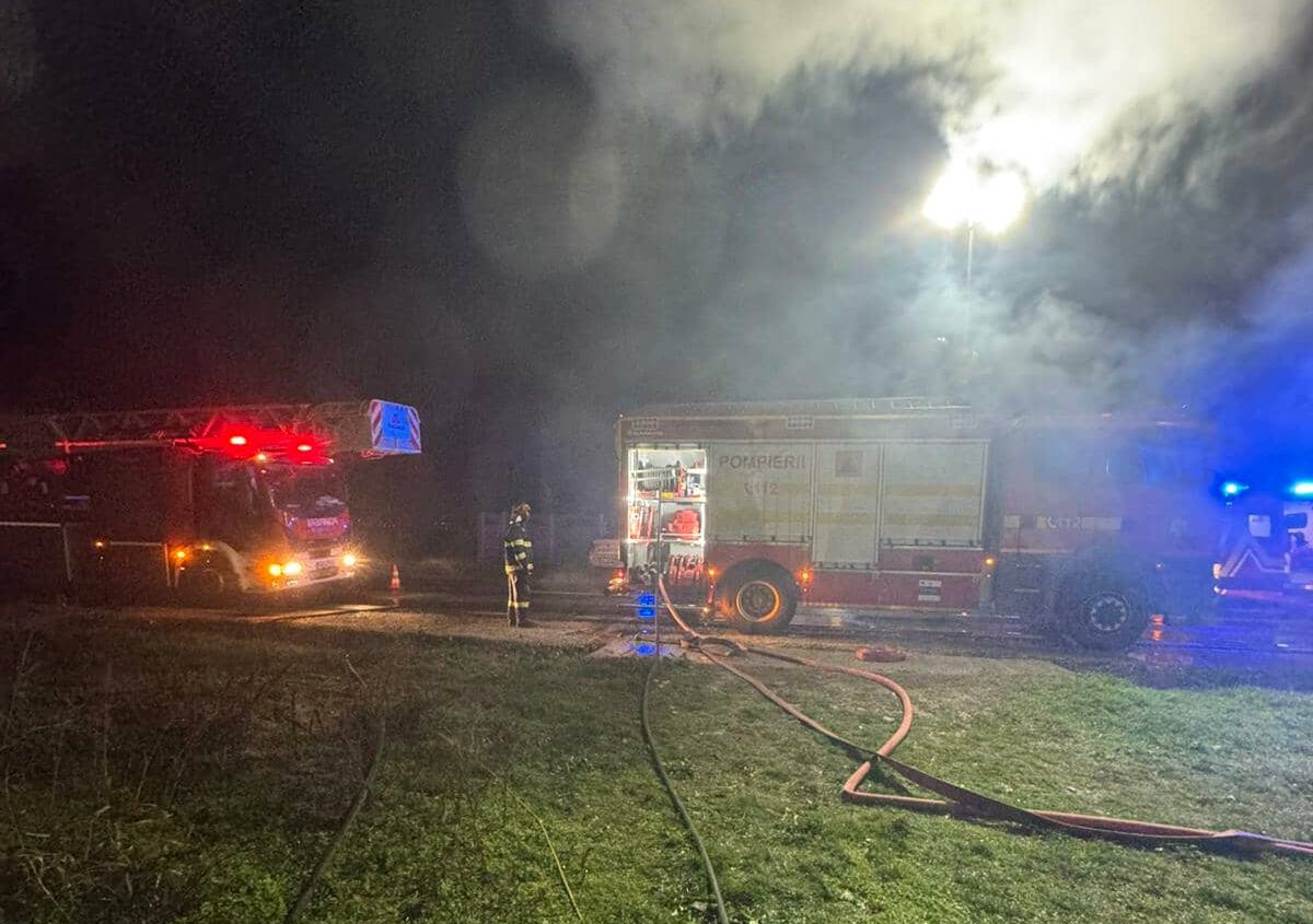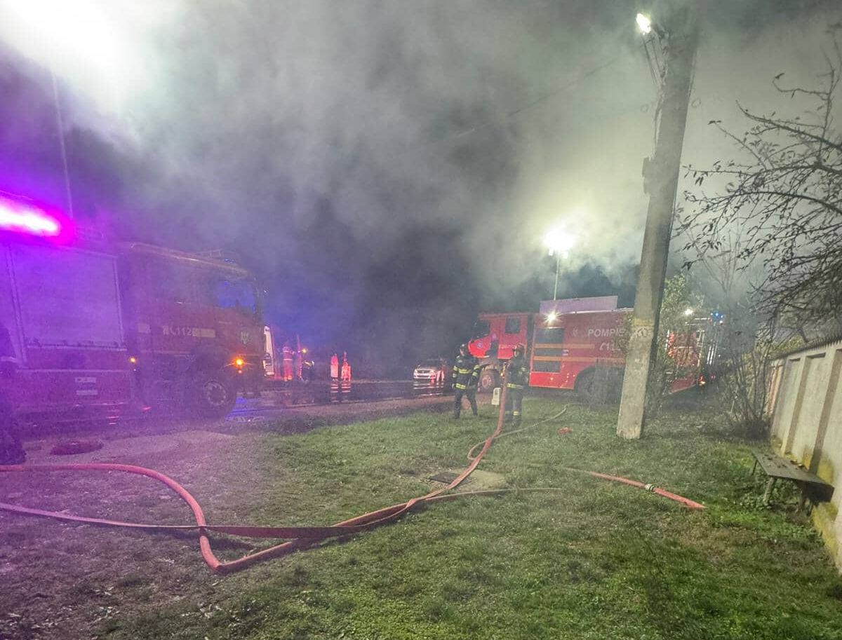 Aproximativ o oră și jumătate a durat intervenția echipajelor de pompieri.