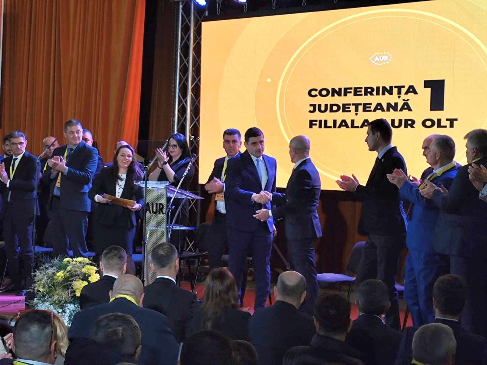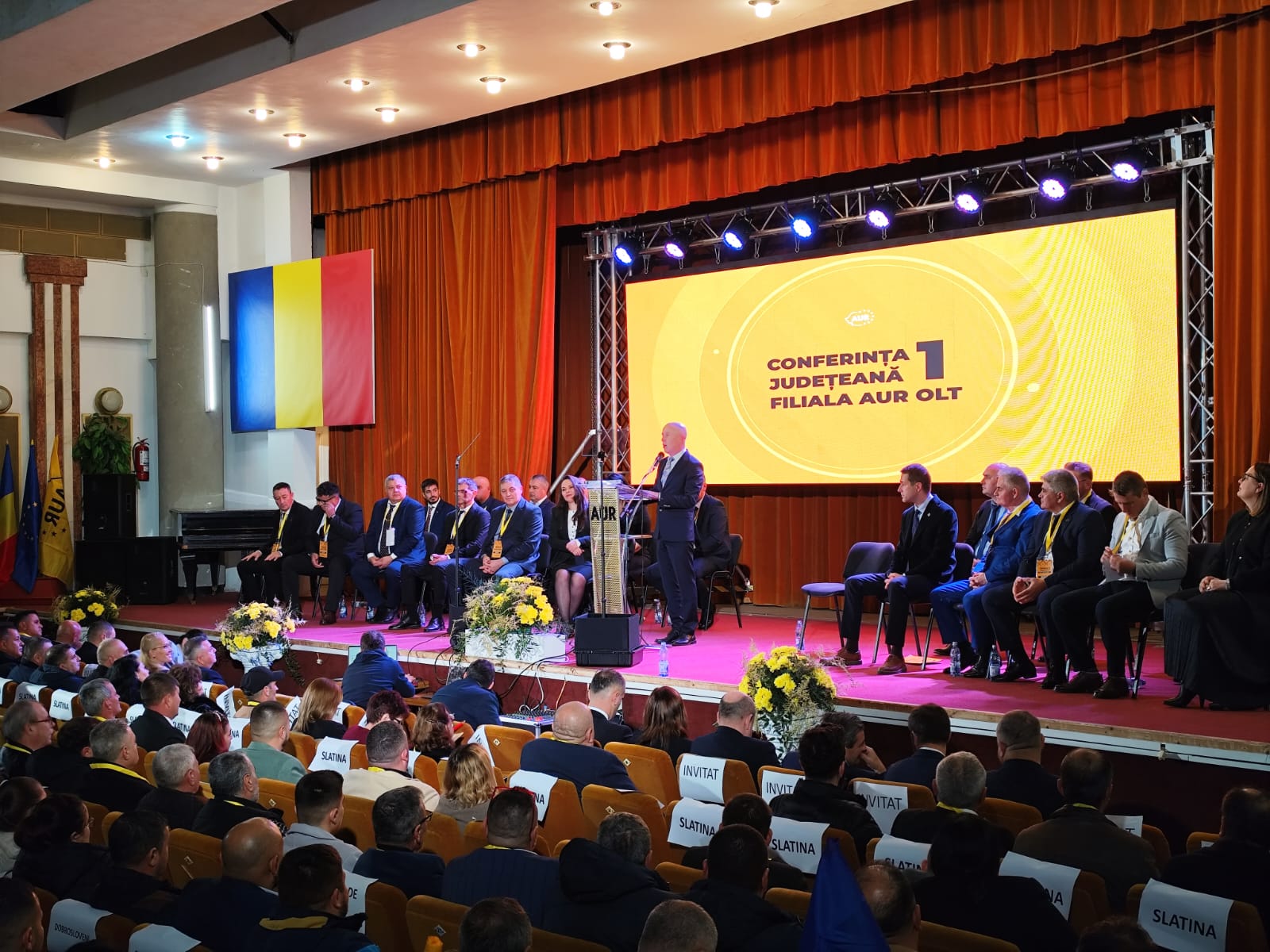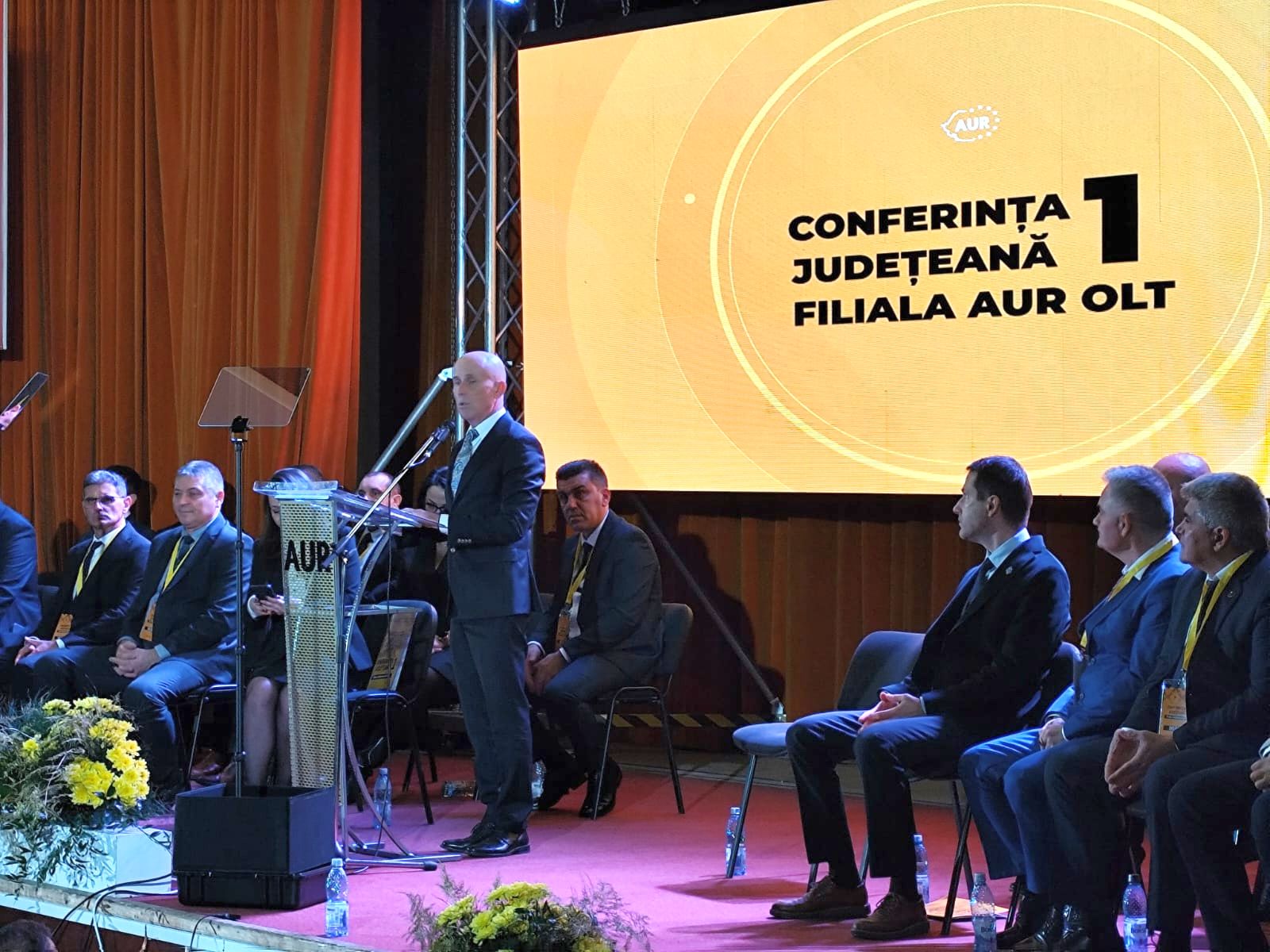 George Simion, președintele Alianței pentru Unirea Românilor, a fost invitatul special al Conferinței Județeane a Filialei Olt a formațiunii politice, prima de acest gen organizată până în prezent. Deputatul AUR de Olt Mugur Mihăescu, președinte interimar al partidului, a fost singurul candidat pentru funcția de președinte al organizației, acesta fiind votat majoritar de cei aproximativ 300 de delegați din județ prezenți în seara zilei de luni, 24 noiembrie, în sala de spectacole a Casei de Cultură a Tineretului Slatina.