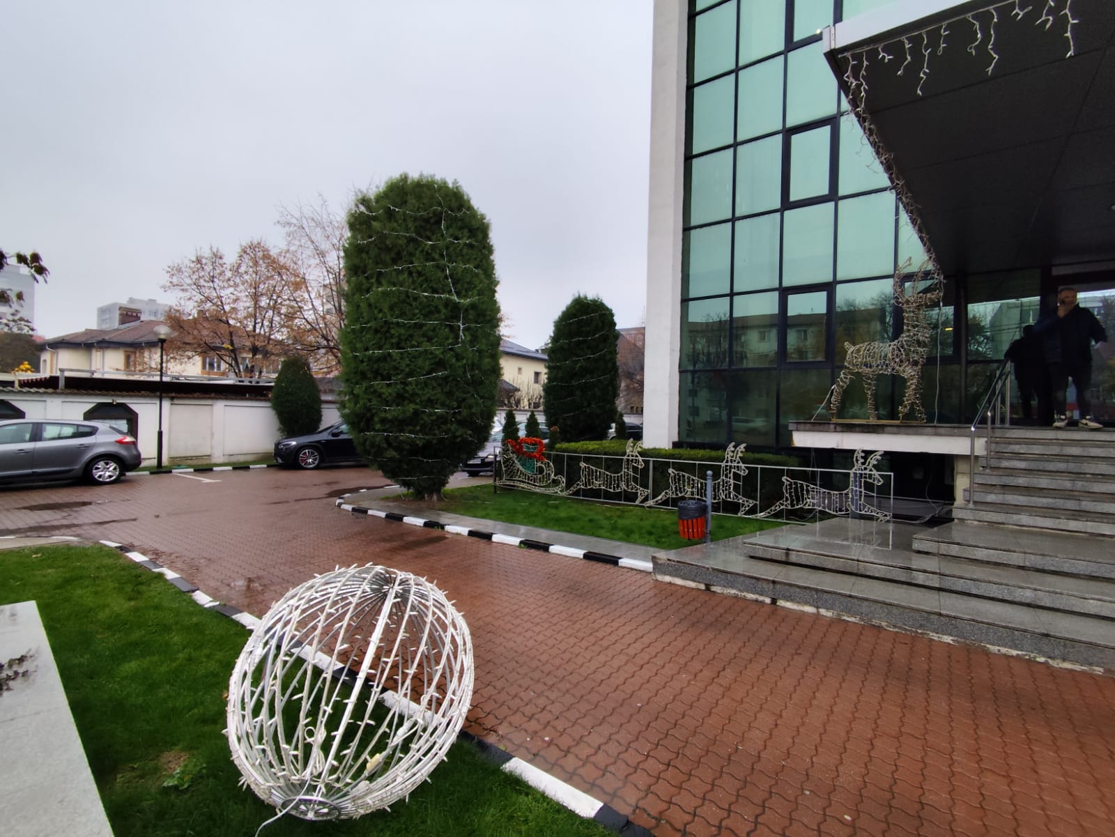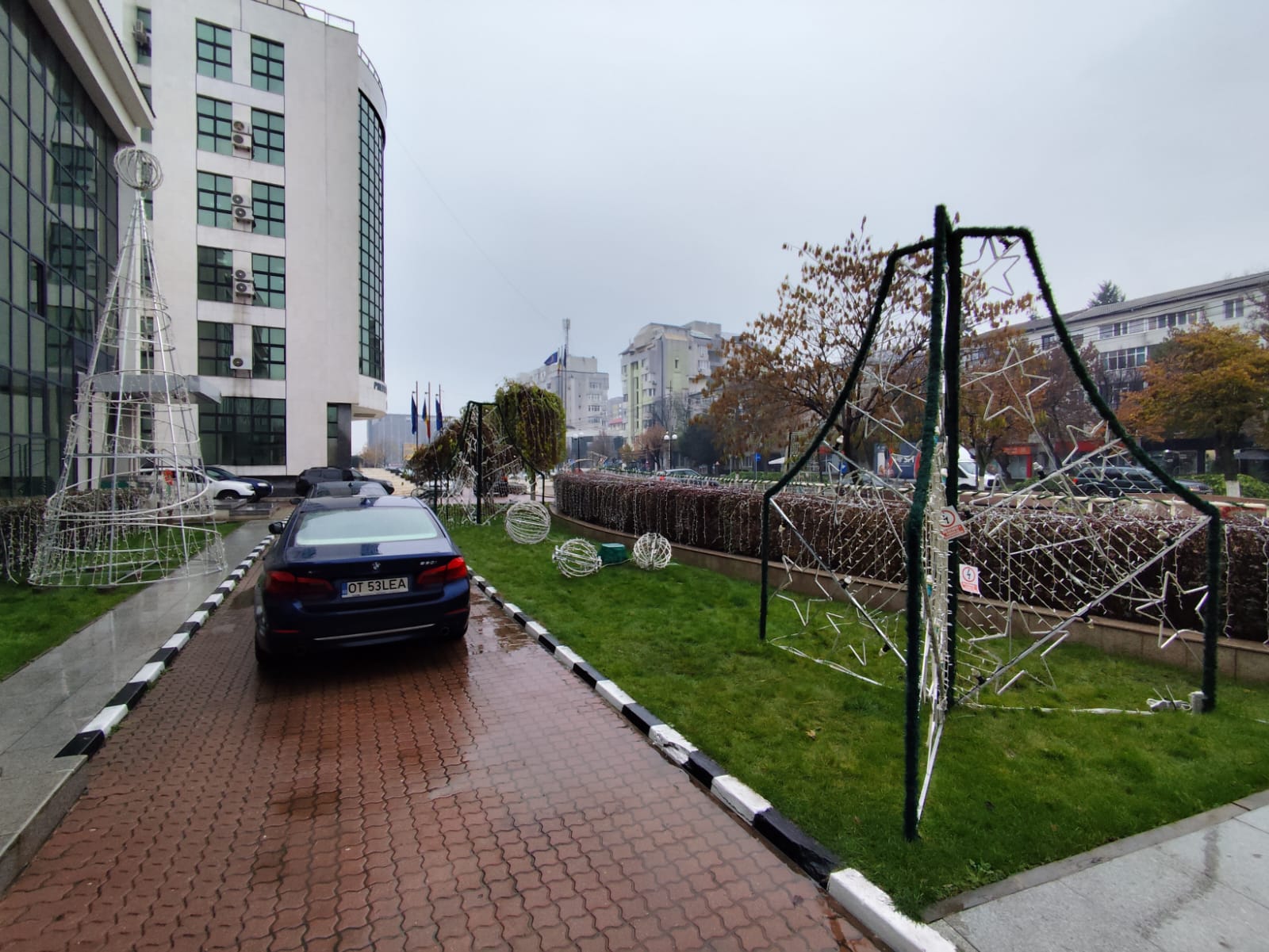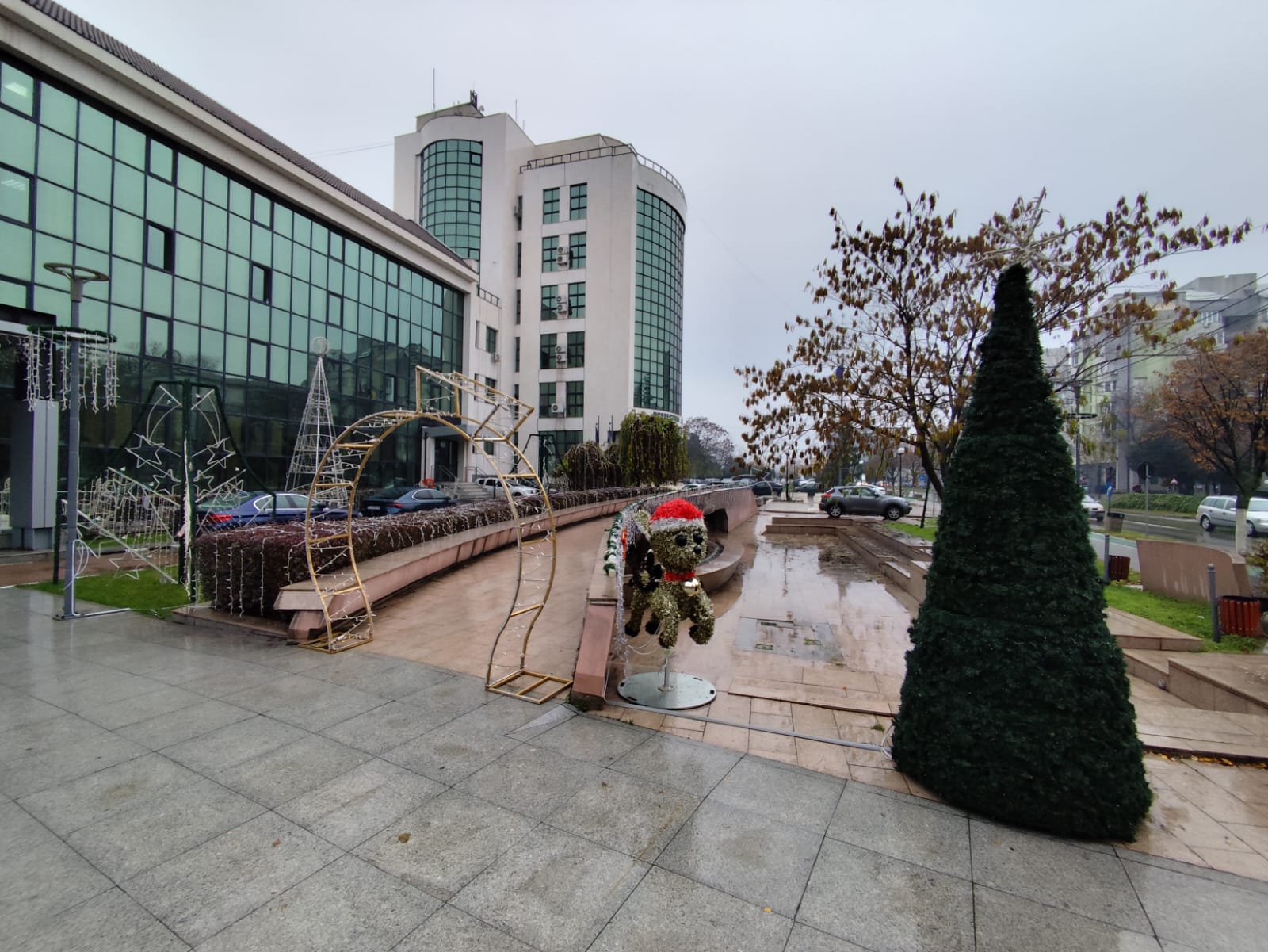Platoul din fața Consiliului Județean Olt, pregătit pentru Sărbătorile de Iarnă. 3.000 de colindători, primiți de autoritățile județene