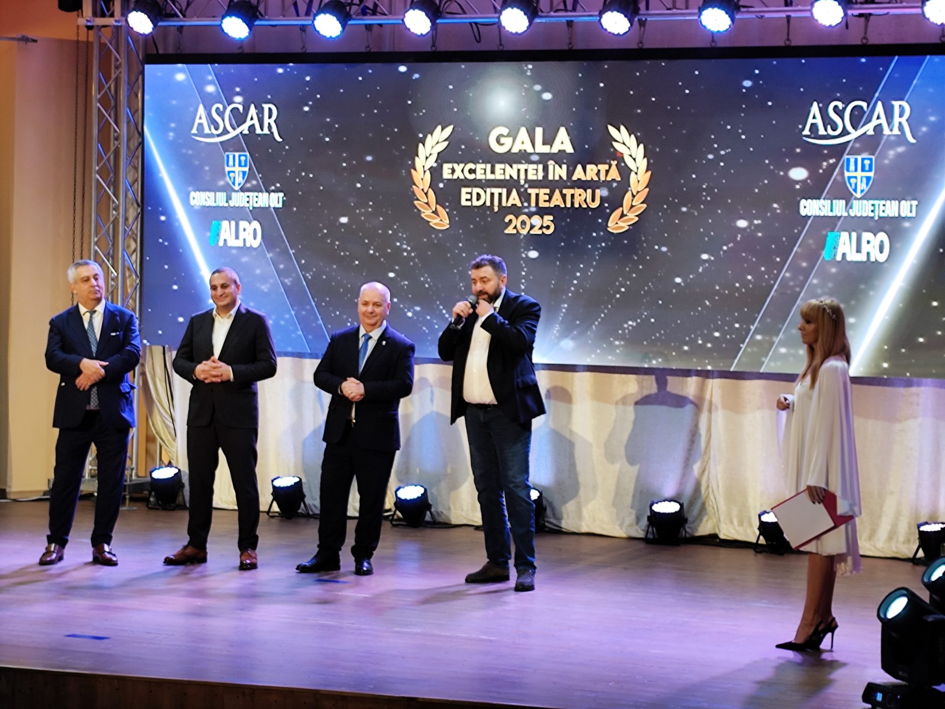 „Iată am ajuns la a treia ediție și sperăm ca și această gală să devină permanentă și o tradiție: Gala Excelenței în Artă. Astăzi (joi n.r.) vorbim despre teatru și misiunea noastră publică, ca de fiecare dată, se bazează pe un principiu simplu, pe care vi l-am spus și la Gala în Educație, dar și la Gala în Sport: dacă un singur copil, în urma acțiunilor noastre, rămâne conectat la activitățile pe care noi le promovăm și nu răspunde tentațiilor vârstei, înseamnă că ne-am îndeplinit misiunea. Îi felicit pe toți cei implicați, felicit Asociația ASCAR, reprezentată de domnul Nicolas Duiliu Zamfirescu de Aritonovici, felicit compania ALRO, reprezentată astăzi, aici, la cel mai înalt nivel, de către președintele Consiliului de Administrație, Marian Năstase, și directorul general, Marin Cilianu. Le mulțumesc pentru că au ales Consiliul Județean partener și le mulțumesc pentru tot ceea ce fac pentru județul Olt. Așa cum am spus-o de fiecare dată: ALRO una dintre companiile din județul Olt care știe să dea înapoi ceva județului… Numărul premiilor este în creștere, de la an la an, ceea ce însemnă că interesul copiilor a crescu și sperăm ca acest lucru să se datoreze și nouă, celor care încercăm să îi stimulăm prin aceste evenimente”, a declarat Marius Oprescu, președintele CJ Olt.