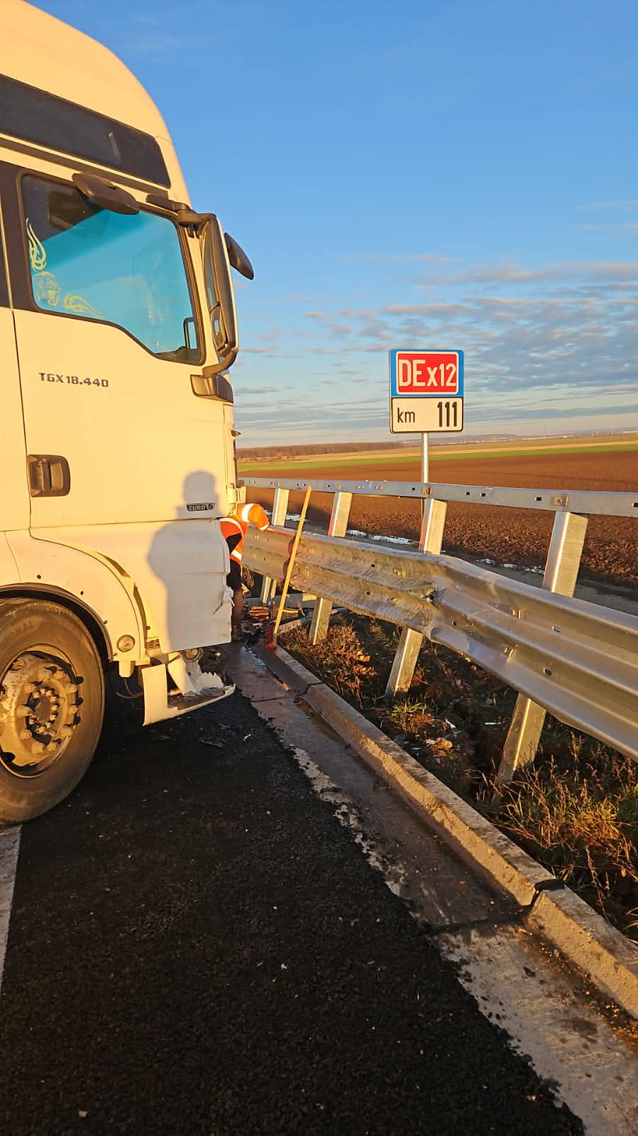 În eveniment a fost implicat un ansamblu rutier, care a rămas imobilizat pe carosabil după ce a intrat în coliziune cu glisiera.
