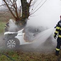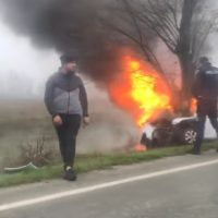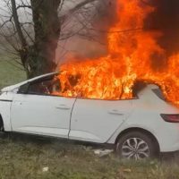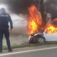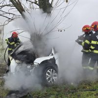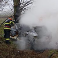 Pompierii Detașamentului Slatina, cu o autospecială de stingere, o autospecială pentru descarcerare și un echipaj SMURD, au intervenit în dimineața zilei de sâmbătă, în jurul orei 11:00, la un grav accident de circulație urmat de incendiu, ce a avut loc pe Drumul Național 65 – European 574, în zona comunei oltene Găneasa. În momentul sosirii echipajelor, autoturismul ardea generalizat, iar șoferul, un tânăr de 19 ani, din municipiul Slatina, care se afla în mașină, era blocat în interior, inconștient.