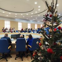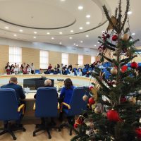 Consilierii județeni au avut parte de o surpriză joi, 18 decembrie, înainte de începerea ultimei ședințe ordinare din anul 2025. Aleșii au fost colindați de un grup vocal de fete și băieți, care la finalul micului spectacol au primit cadouri de la mesagerii lui Moș Crăciun.