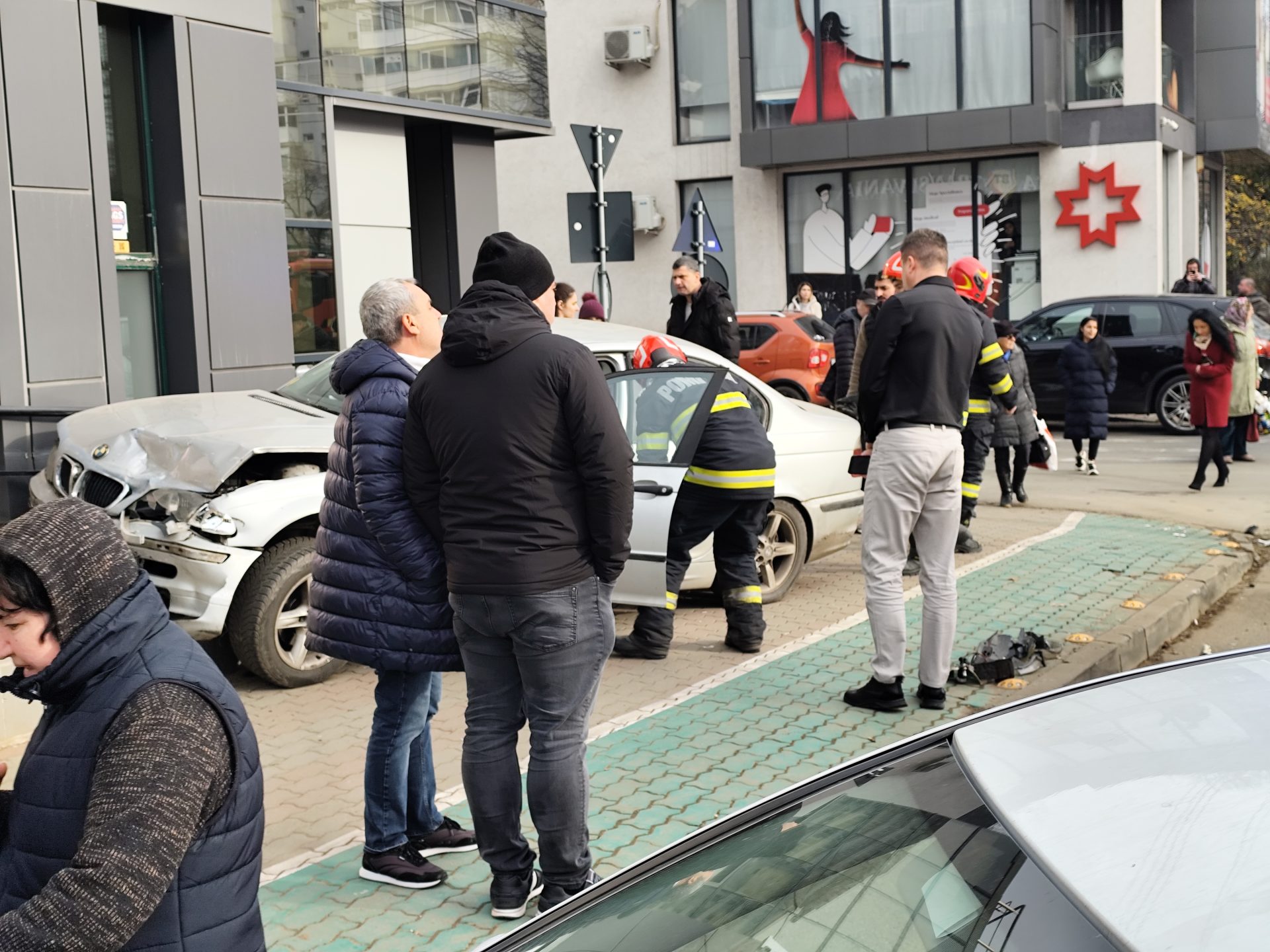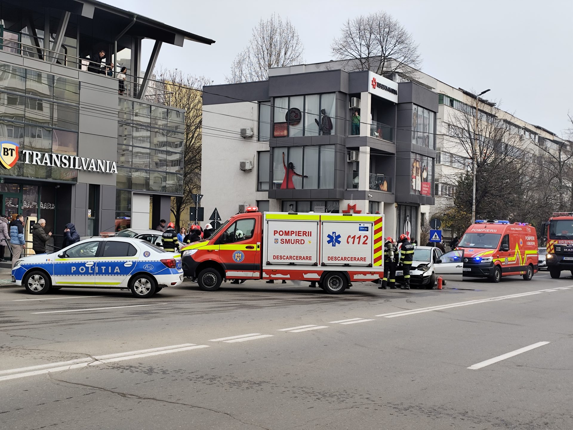 Coliziune violentă între două autoturisme pe strada Crișan din municipiul Slatina. Mai multe echipaje de salvatori au intervenit la fața locului