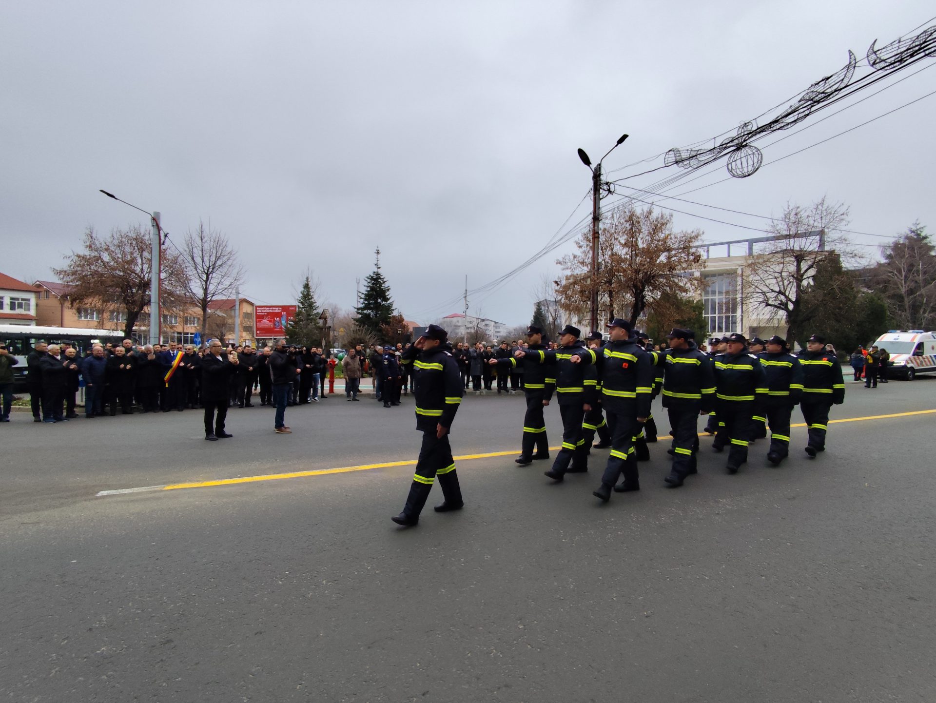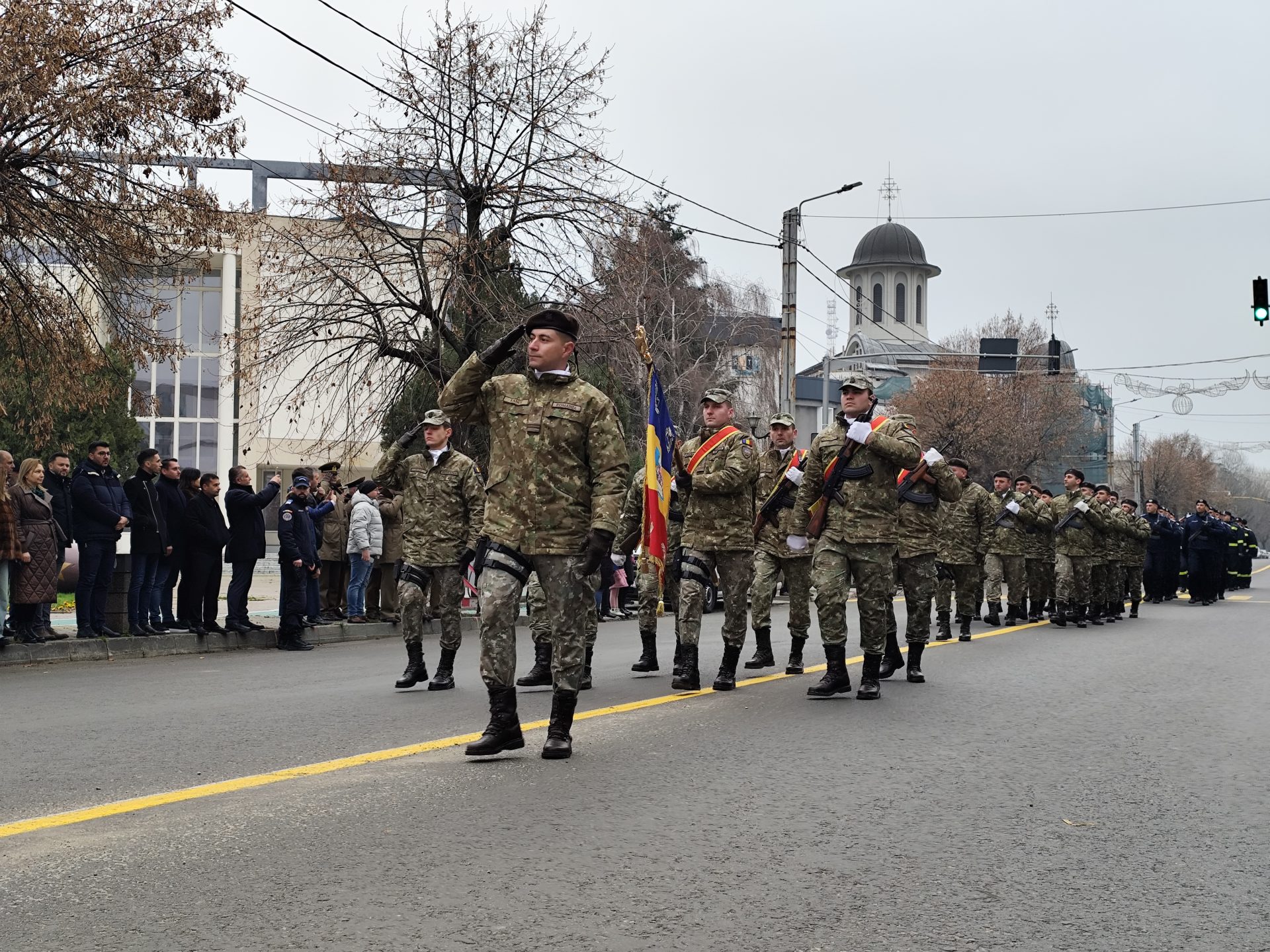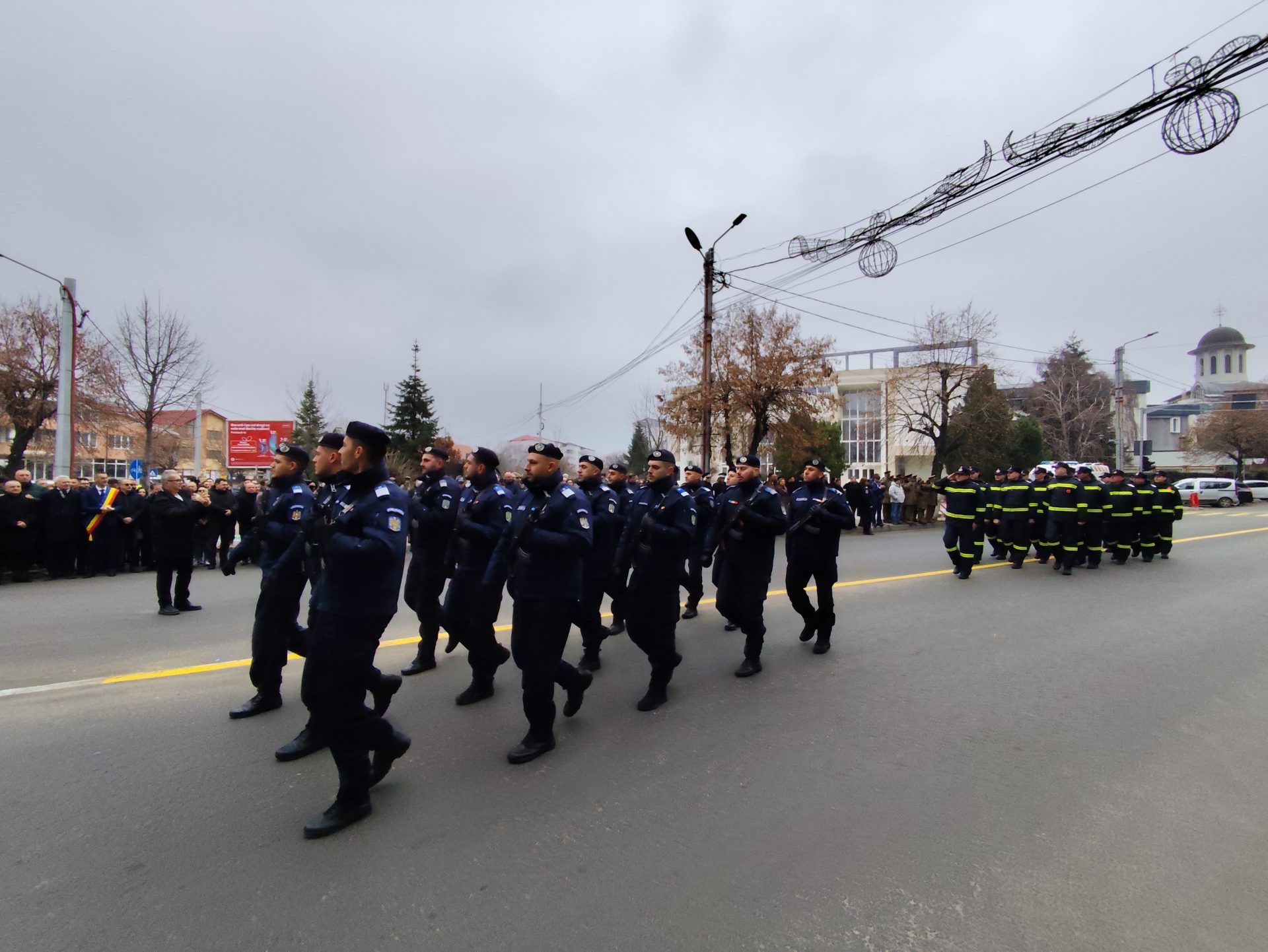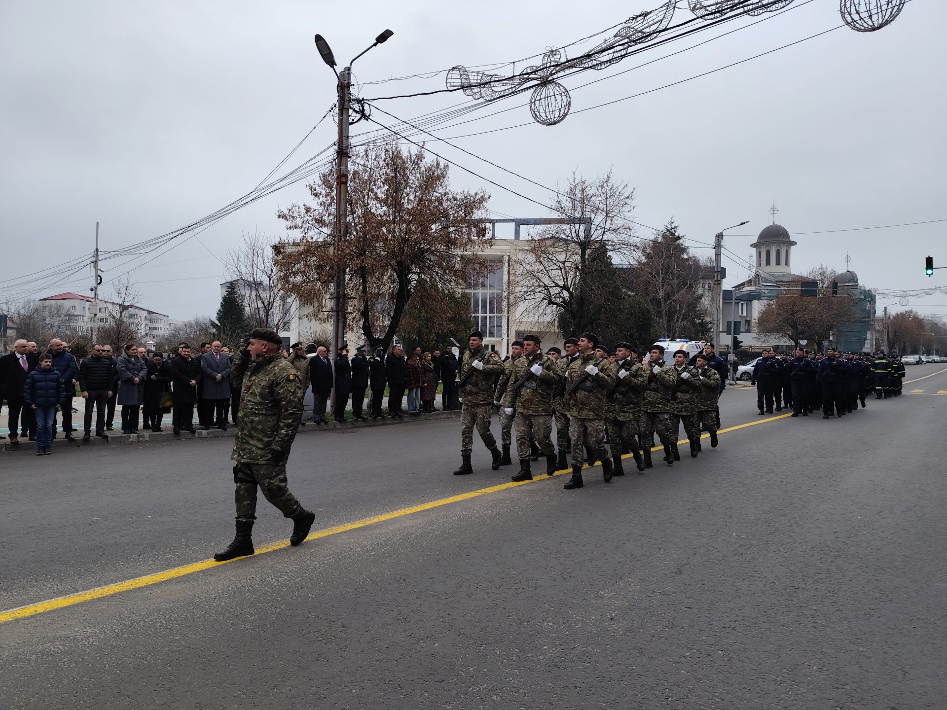 Pe imnul Eroilor, manifestarea a continuat apoi cu depunerea de coroane de flori la troiță, pentru a-i omagia pe martirii din revoluţiei din Decembrie ’89, dar și cu defilarea gărzii de onoare alcătuită din militari ai Batalionului 22 Infanterie „Romanați” din municipiul Caracal, efective ale Jandarmeriei Olt și pompieri din cadrul Inspectoratului pentru Situații de Urgență Olt.
