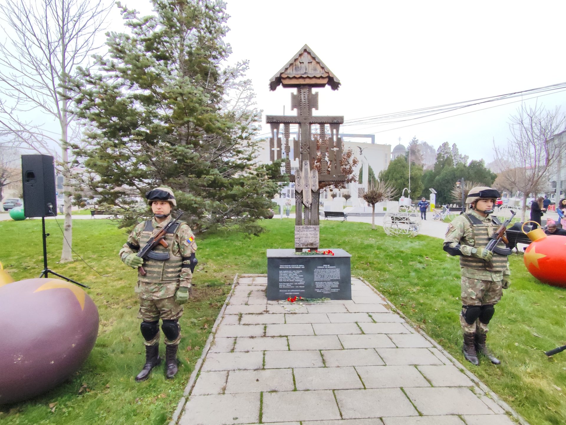Troița Eroilor din Slatina, locul în care zeci de persoane i-au comemorat pe martirii Revoluției de acum 36 de ani