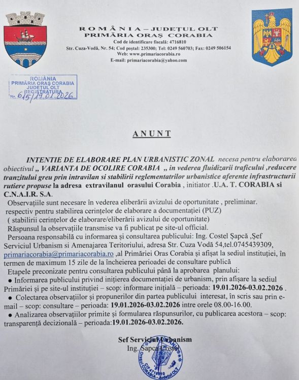 AcasăAdvertorial ianuarie 19, 2026 Evdo FacebookInstagramTwitterYoutube Ultimele Articole Eveniment Un tânăr din Colonești a murit după ce a intrat cu autoturismul într-un autocamion pe DN 65, la Lunca Corbului Eveniment Tânărul din Voineasa care a provocat accidentul mortal din Dobrun, reținut de polițiști Advertorial ANUNȚ Actualitate CAS Olt. De ce servicii beneficiază persoanele înscrise în programele naționale de sănătate, începând cu data de 1 ianuarie 2026 ANUNȚ Acțiune FacebookTwitterPinterestWhatsApp - Advertisement - - Advertisement - ianuarie 19, 2026 Evdo FacebookInstagramTwitterYoutube Citește și Advertorial ANUNȚ INTENȚIE DE ELABORARE PUZ Advertorial ANUNȚ PUBLIC Advertorial Sărbători Binecuvântate! Advertorial ANUNȚ Advertorial Crăciun Fericit! Ultimele știri Eveniment Un tânăr din Colonești a murit după ce a intrat cu autoturismul într-un autocamion pe DN 65, la Lunca Corbului Eveniment Tânărul din Voineasa care a provocat accidentul mortal din Dobrun, reținut de polițiști Actualitate CAS Olt. De ce servicii beneficiază persoanele înscrise în programele naționale de sănătate, începând cu data de 1 ianuarie 2026 Național ANM: Alerte Cod galben de ger în majoritatea regiunilor, până miercuri dimineața Nu pierdeți Național #AnulNadia ‘Primul 10 nu a fost doar al meu, ci și al unei țări care m-a format’, afirmă Nadia Comăneci Național Cseke Attila: Ministerul Dezvoltării a creat 3.000 de noi locuri în creșe Național Peste jumătate dintre românii activi profesional susțin că își vor păstra locurile de muncă (studiu) Național Guvern: Dezbatere privind modificarea legislației referitoare la accesul lucrătorilor străini pe piața muncii din România Național Pistol: Lansăm licitația pentru ‘capătul de nord’ al Drumului Expres spre Ucraina