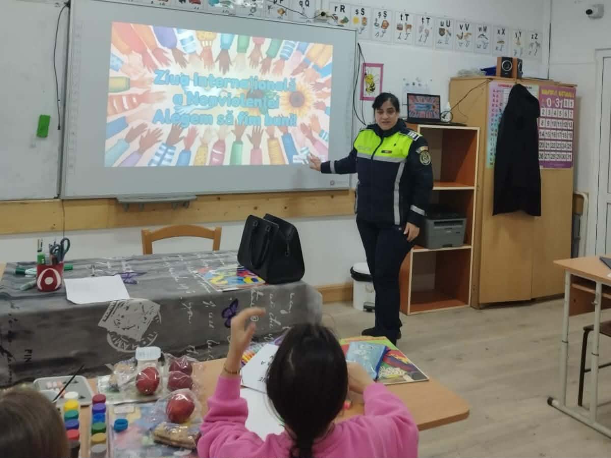 Inspectoratul de Poliție Județean Olt, prin structurile de siguranță școlară, prevenirea crimininalității și ordine publică, a desfășurat, în perioada 26 – 30 ianuarie 2026, mai multe activități de informare și prevenire în unitățile de învățământ preuniversitar din județ, în contextul marcării Zilei Internaţionale pentru Nonviolență în Școala.