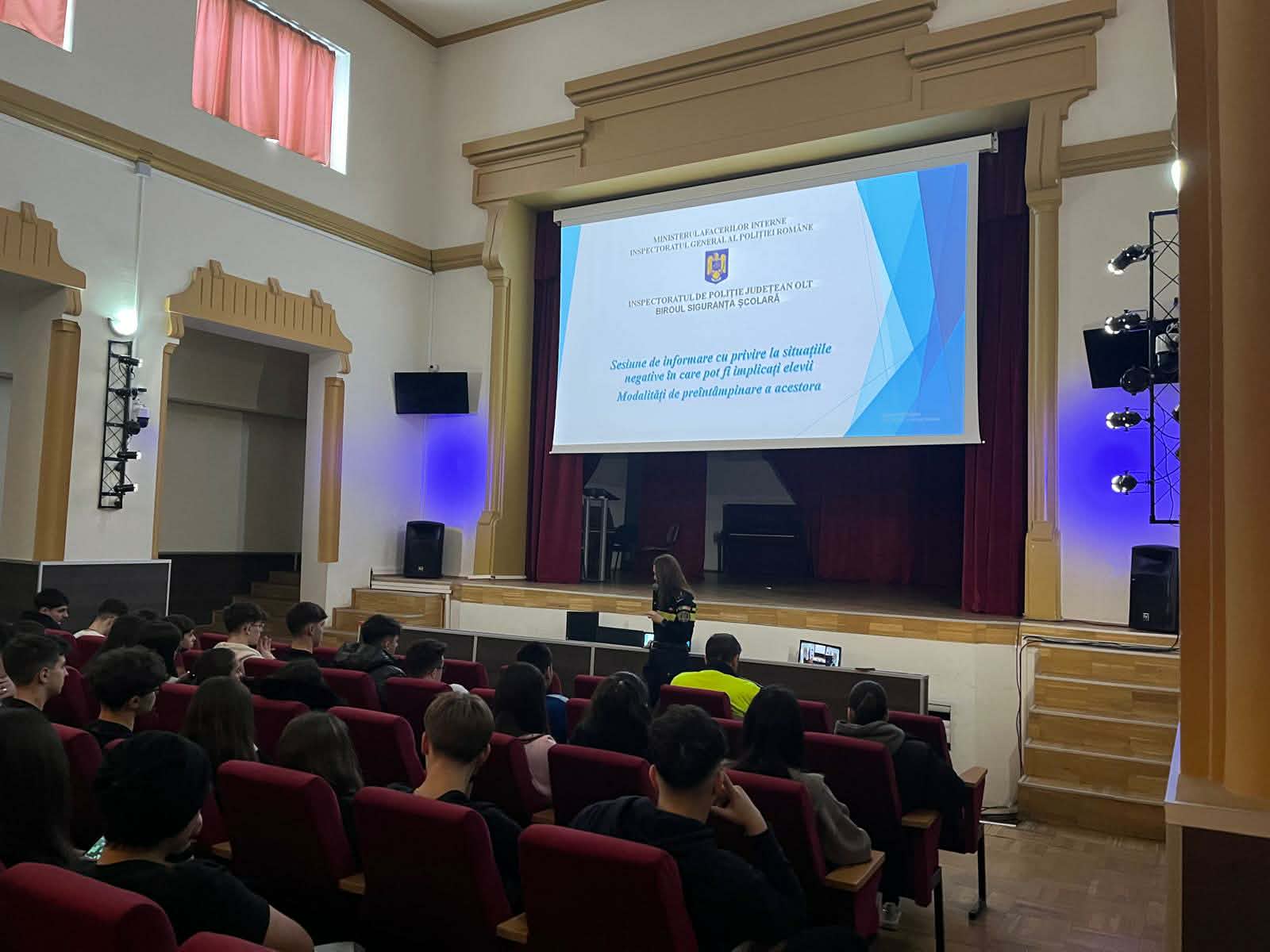 Agentul principal Ionuț Mitrică, purtător de cuvânt al IPJ Olt, a declarat că în cadrul întâlnirilor pe care oamenii legii lea-u avut cu elevii și profesorii au fost abordate subiecte referitoare la formele de violență școlară, modalitățile de identificare și intervenție instituțională în cazul producerii unor astfel de fapte, colaborarea interinstituțională și atribuțiile fiecărei instituții implicate în prevenirea și combaterea fenomenului violenței școlare, precum și rolul activ al familiei în educarea copiilor pentru adoptarea unui comportament nonviolent și responsabil, atât în mediul școlar, cât și în societate, în general.