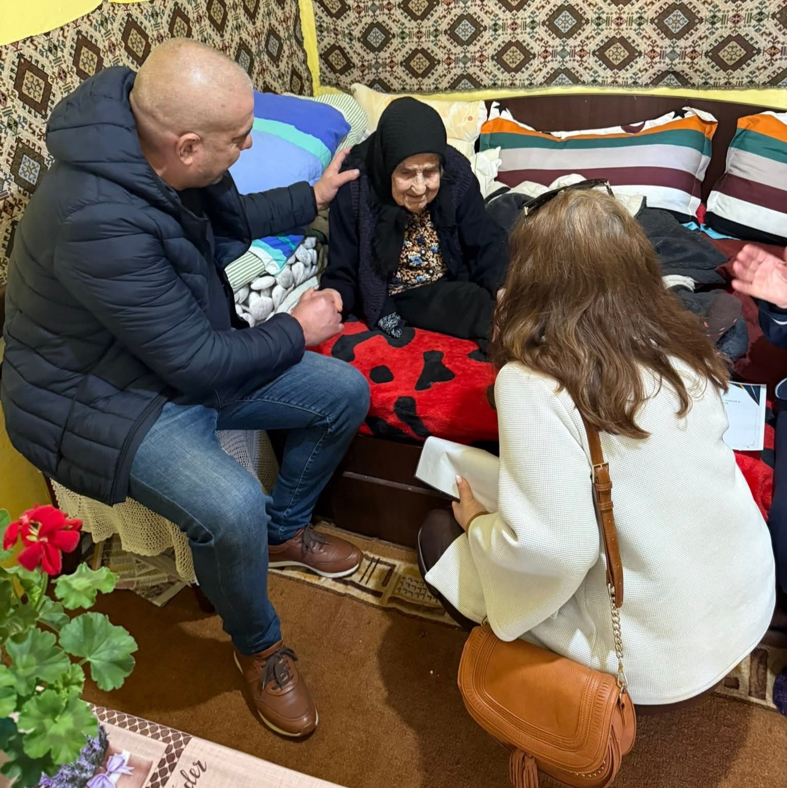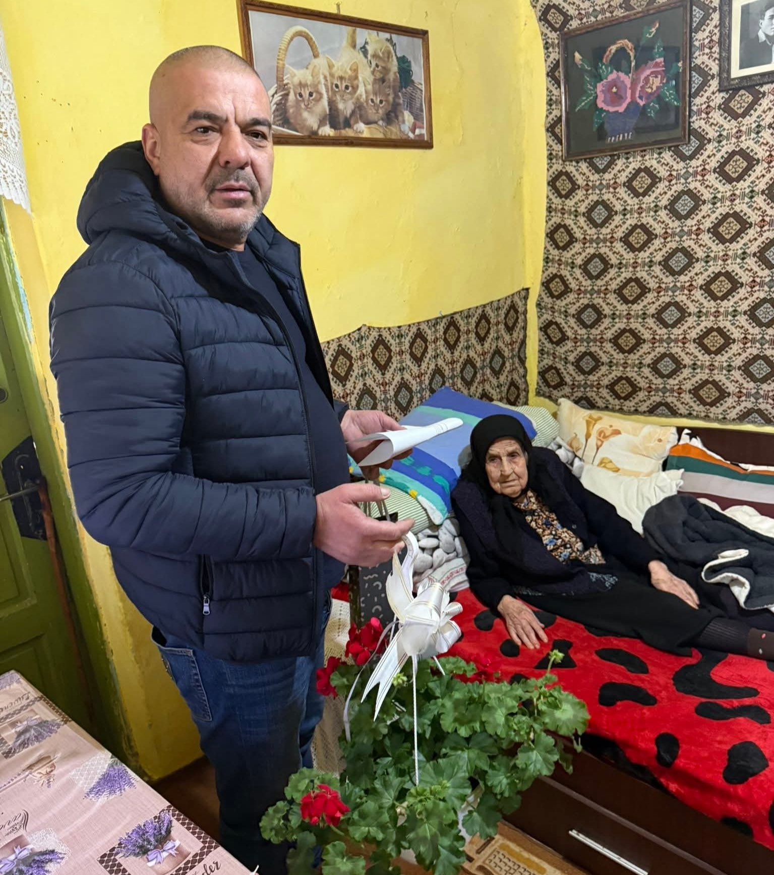 La un secol de viață, bătrânica din satul Racovița a fost vizitată inclusiv de Liviu Anunța, primarul din Voineasa, de un reprezentant al Consiliului Județean Olt, dar și de câteva neamuri, printre care una dintre fiice. Cu toții i-au trecut pragul locuinței sale modeste, pentru a-i oferi darurile pregătite la zi de sărbătoare.