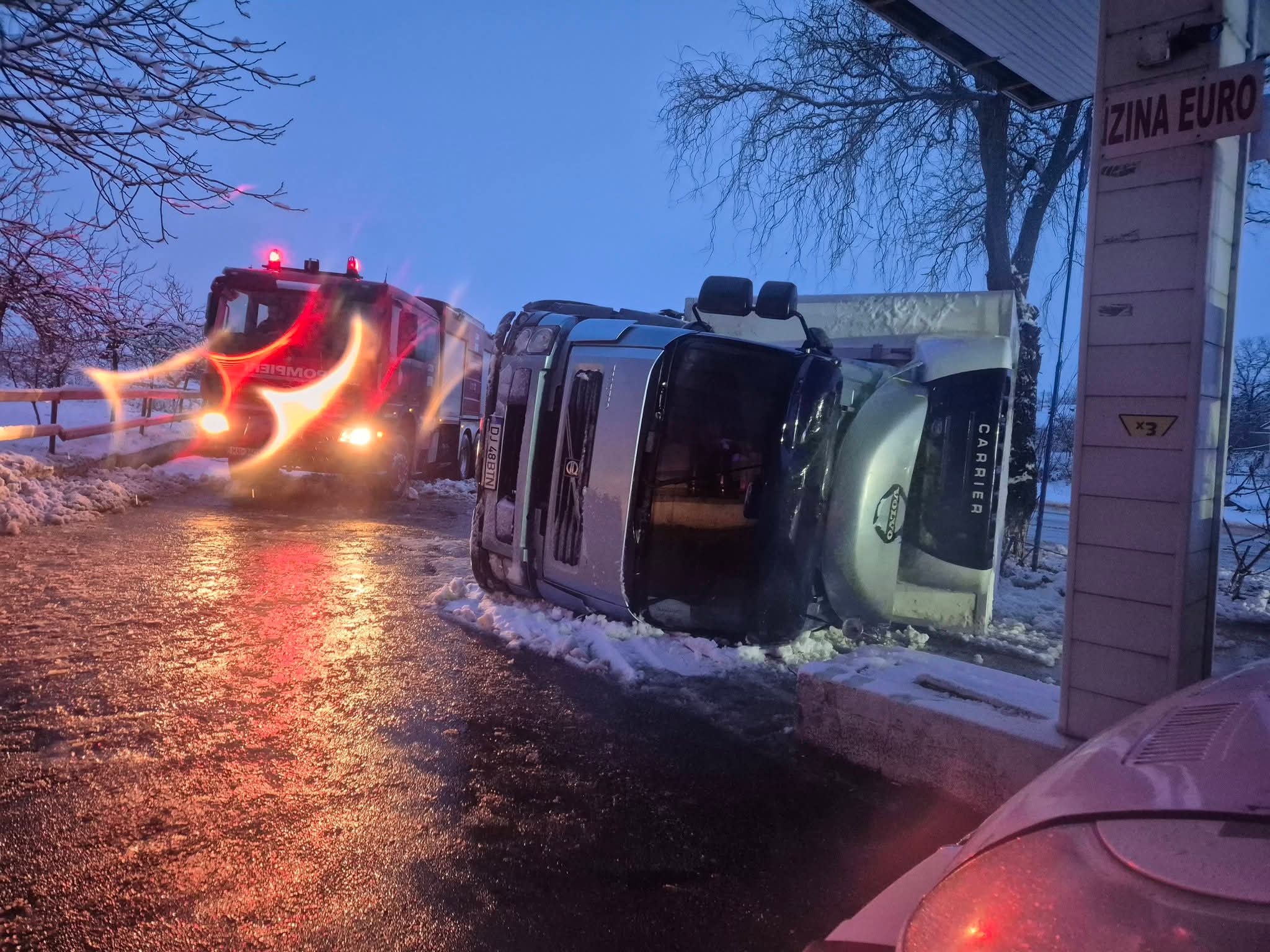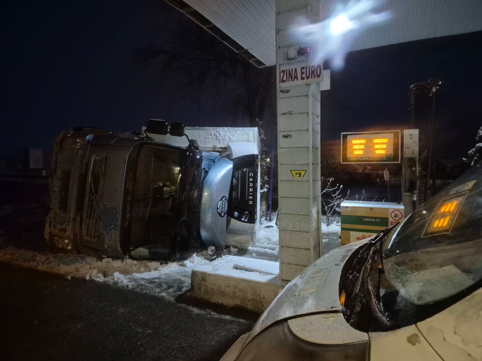 Un eveniment rutier ce putea avea urmări mult mai grave a avut loc în dimineața zilei de miercuri, 18 februarie 2026, în jurul orei 06:40, pe Drumul Județean 546, chiar la intrarea în comuna Brebeni dinspre municipiul Slatina. O tragedie a fost evitată în ultimul moment, ținând cont că un TIR s-a răsturnat chiar în stația PECO de la intrarea în localitate, fiind la un pas de a lovi o pompă de benzină.