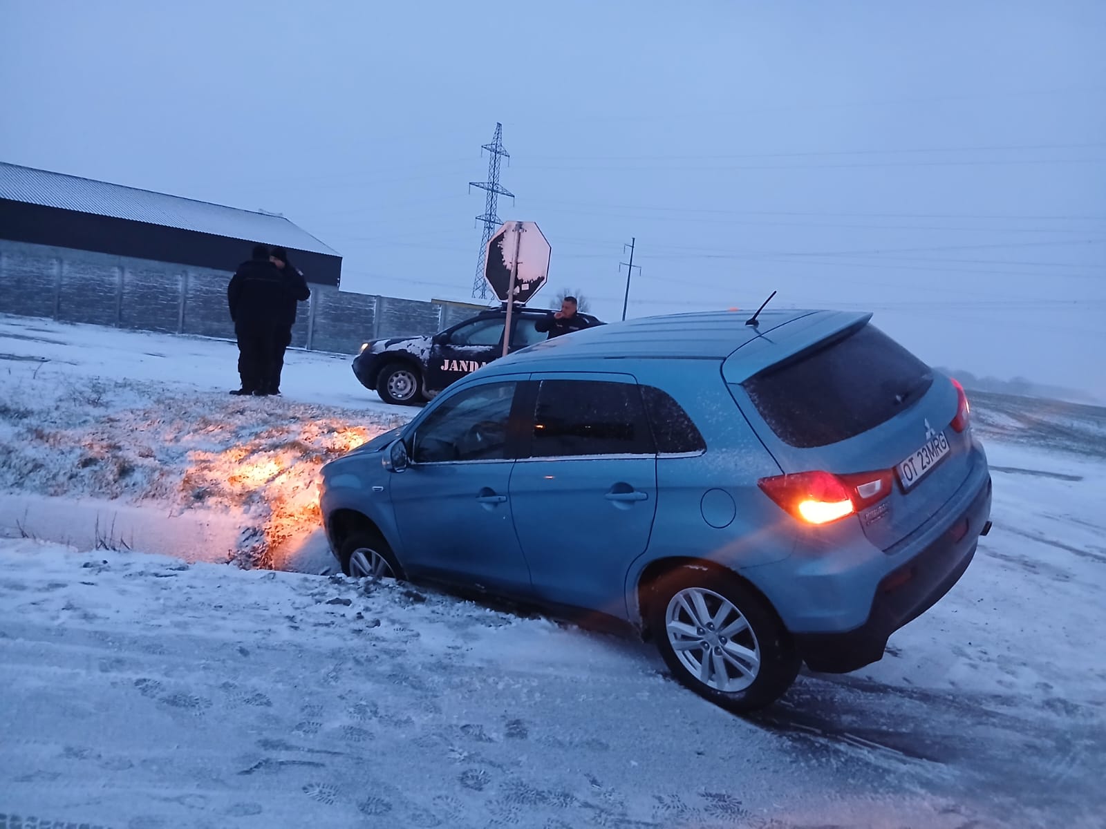 Două mașini ieșite în afara drumului, în zona Brebeni, repuse în siguranță pe carosabil de jandarmi