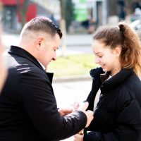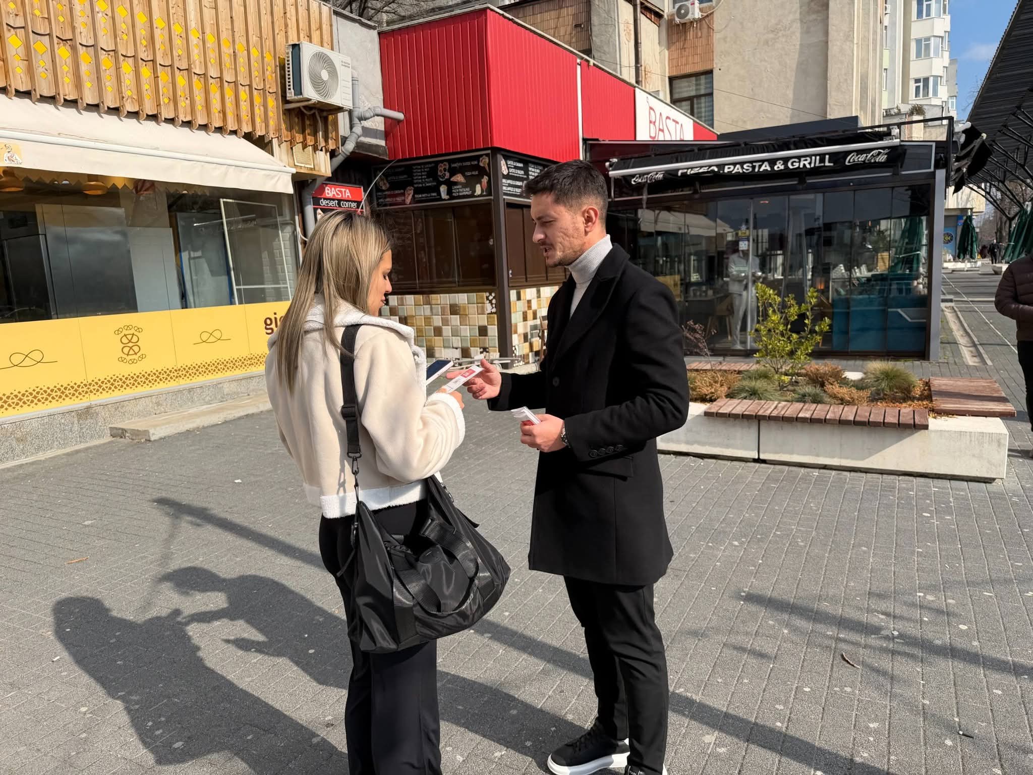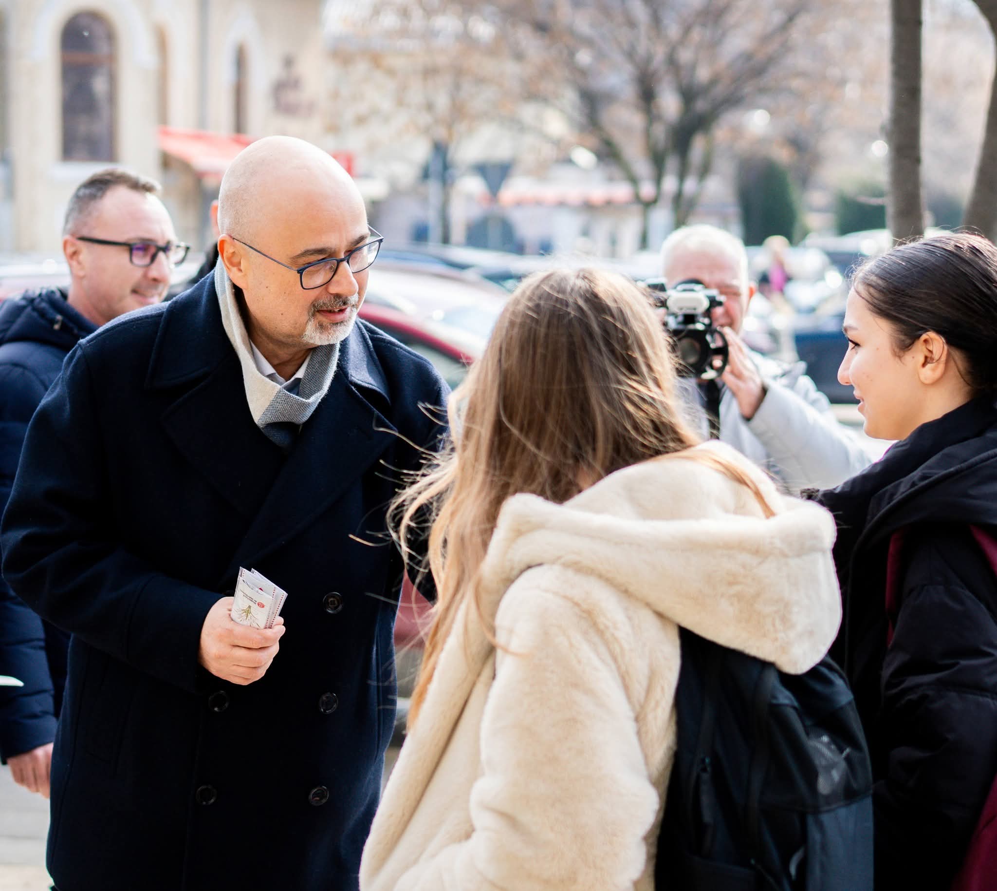 Sute de slătinence, și nu doar ele, au fost oprite pe stradă pentru a primi în dar mărțișoare care mai de care mai frumoase.