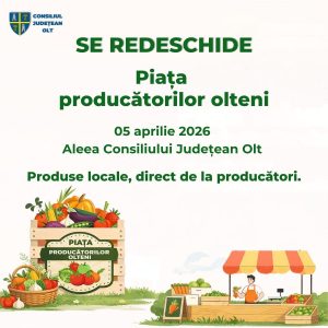 „Produse din Olt, direct de la producători, în fiecare duminică. Începând cu 5 aprilie, Consiliul Județean Olt redeschide Piața Producătorilor Olteni, pe aleea din fața instituției. Fructe, legume, flori și produse alimentare locale, toate provenite din fermele și gospodăriile din județ. Fără intermediari. Direct de la producători. Punem la dispoziție gratuit spațiul și mesele, pentru ca producătorii din Olt să își poată valorifica munca”, au declarat reprezentanții CJ Olt.