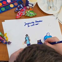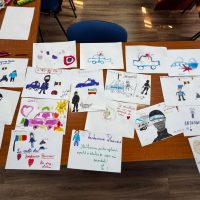 Prima parte a întâlnirii a fost dedicată activității „Jandarmeria MAI frumoasă prin desenele copiilor”, un moment încărcat de emoție.