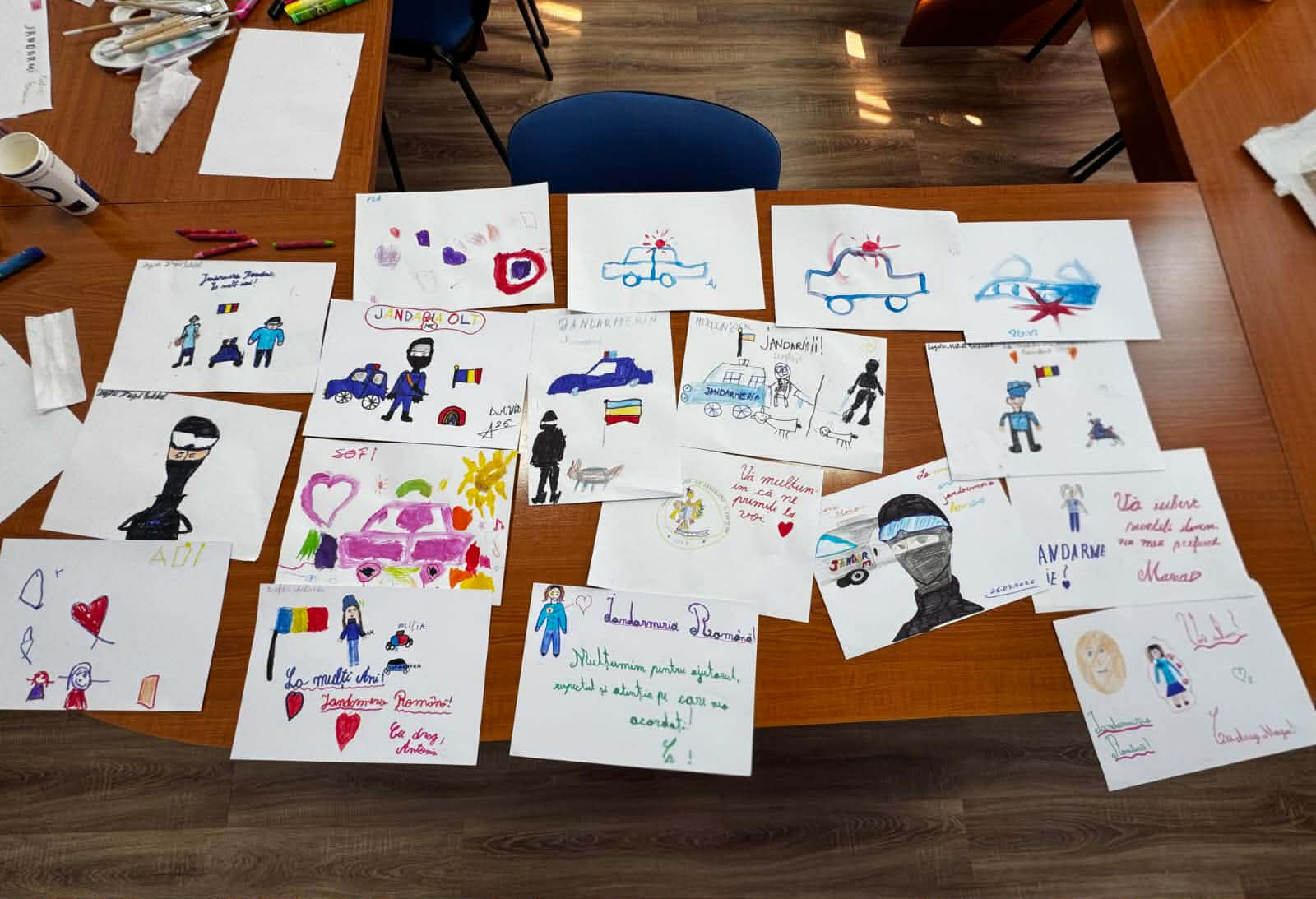 „Lucrările realizate de cei mici au surprins, cu sinceritate și sensibilitate, modul în care percep instituția noastră. Desenele lor au fost deosebit de emoționante, multe dintre ele conținând mesaje de apreciere și afecțiune adresate jandarmilor, gesturi care au subliniat apropierea creată de-a lungul timpului”, a spus reprezentantul instituției Ministerului Afacerilor Interne din teritoriu.