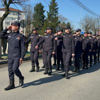 Ceremonia s-a încheiat cu defilarea Gărzii de Onoare, alcătuită din garda drapelului, pompieri, jandarmi și militari, prin fața oficialităților.