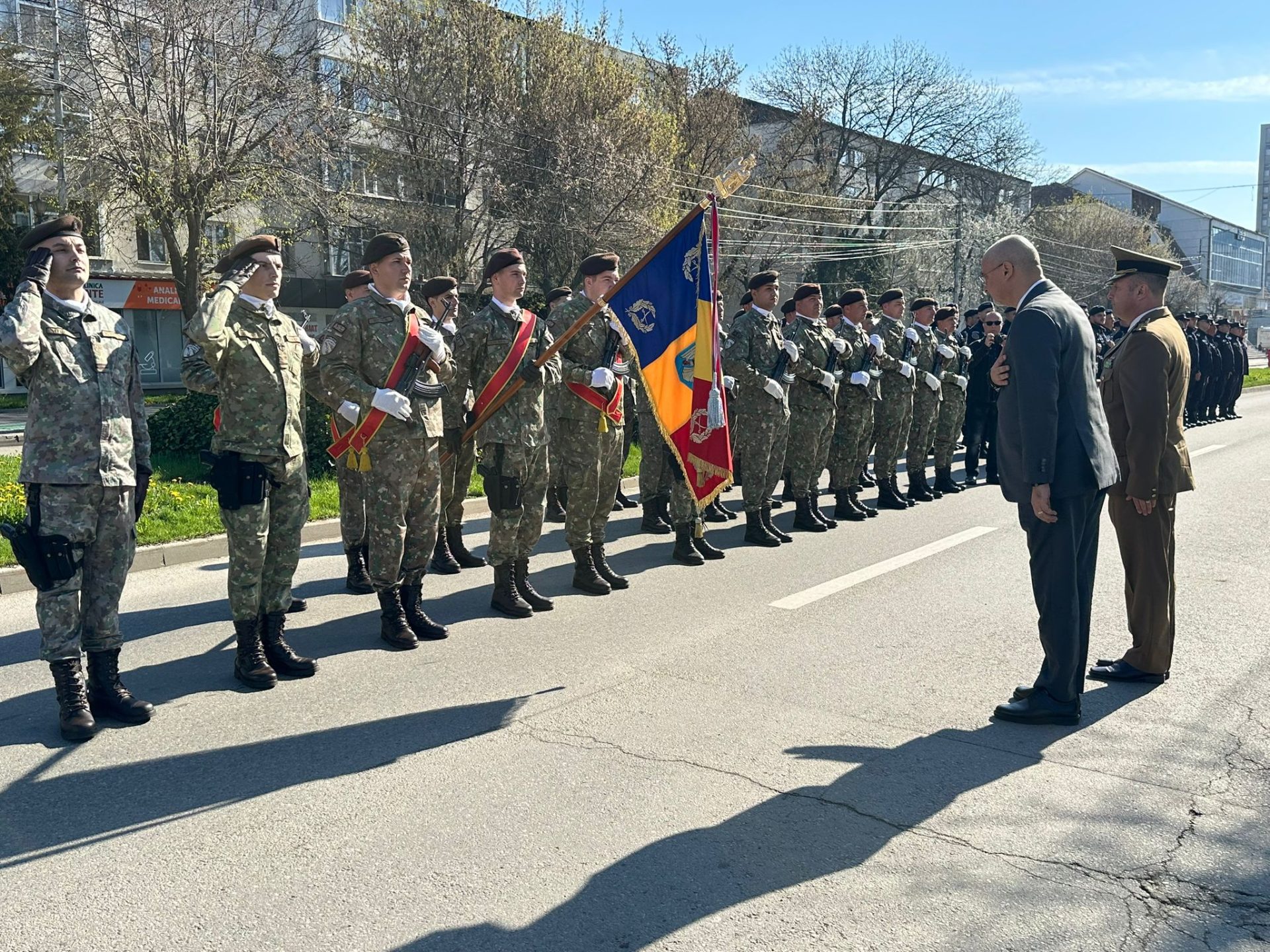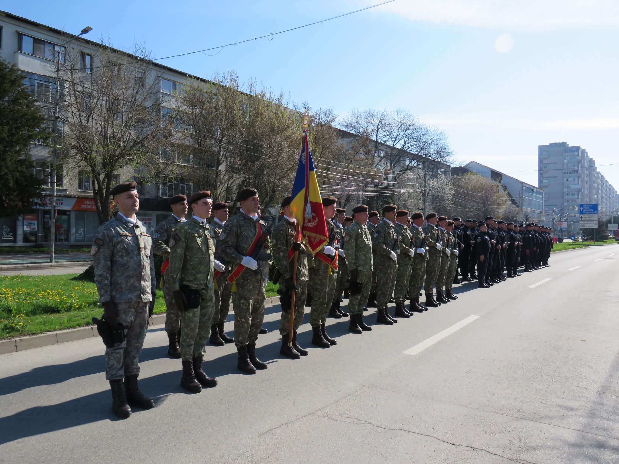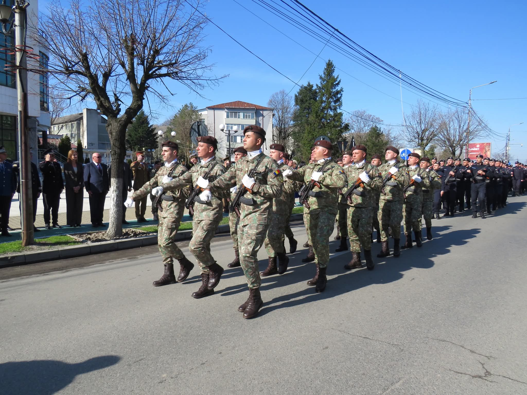 Ceremonia s-a încheiat cu defilarea Gărzii de Onoare, alcătuită din garda drapelului, pompieri, jandarmi și militari, prin fața oficialităților.