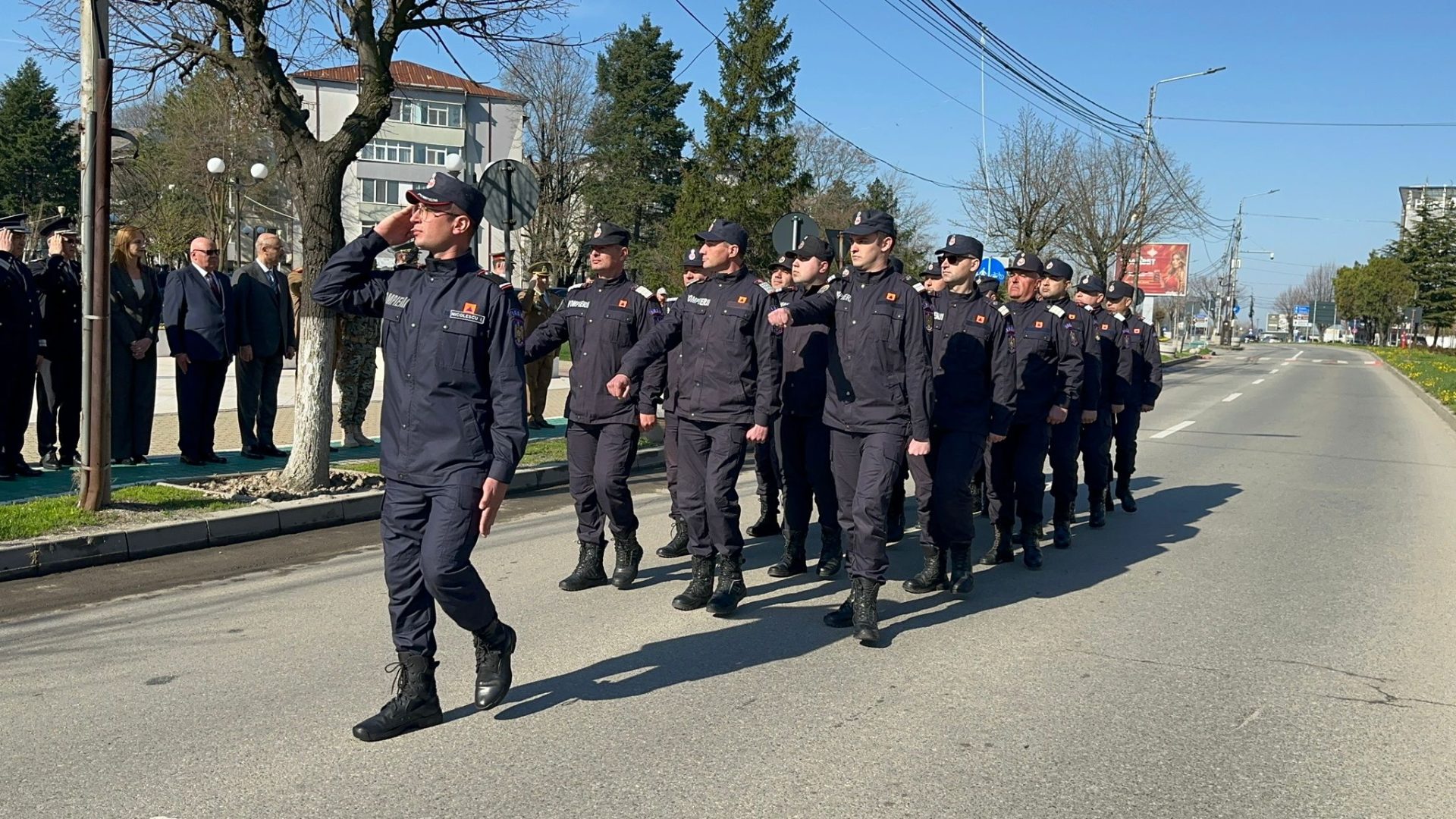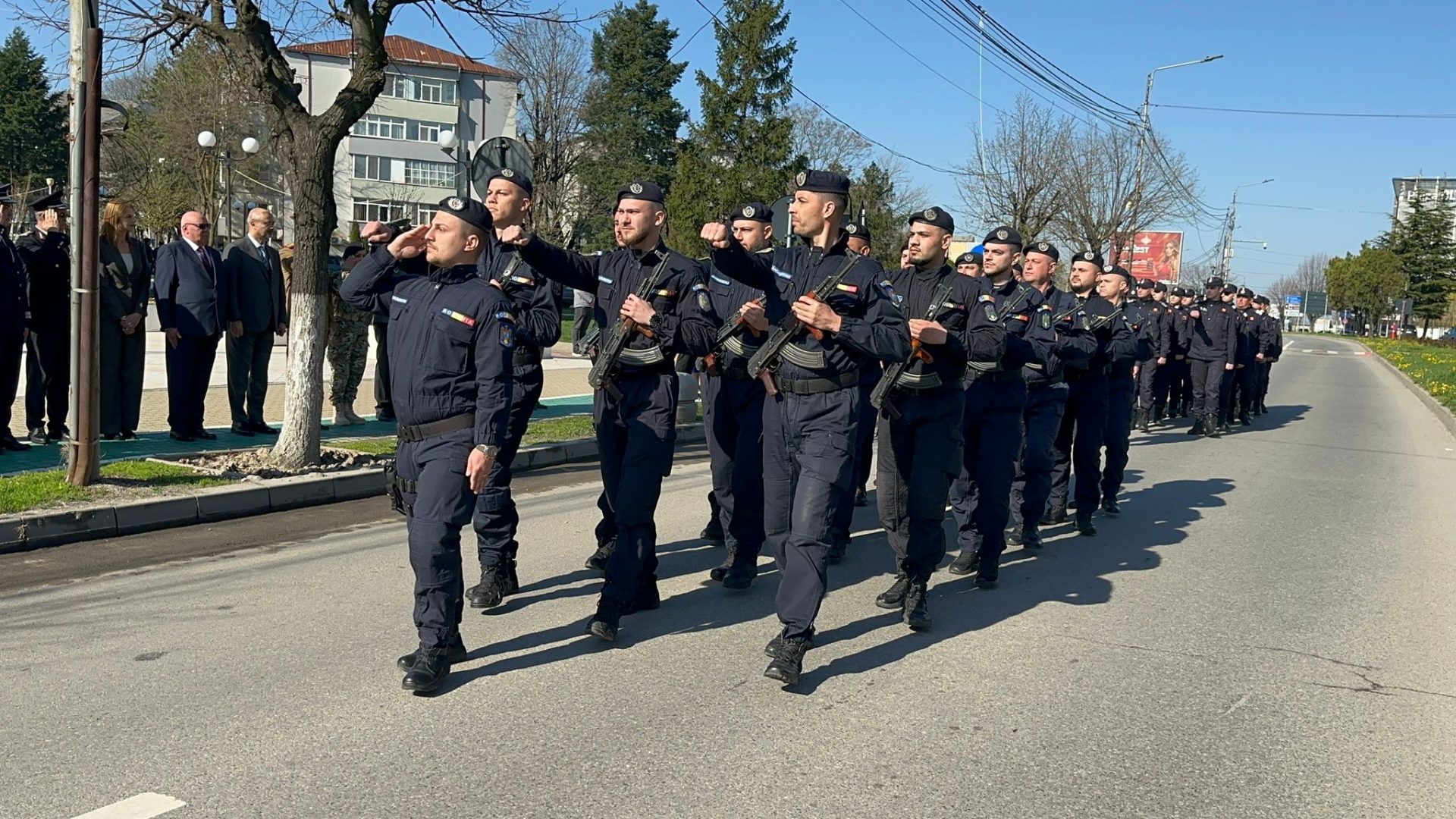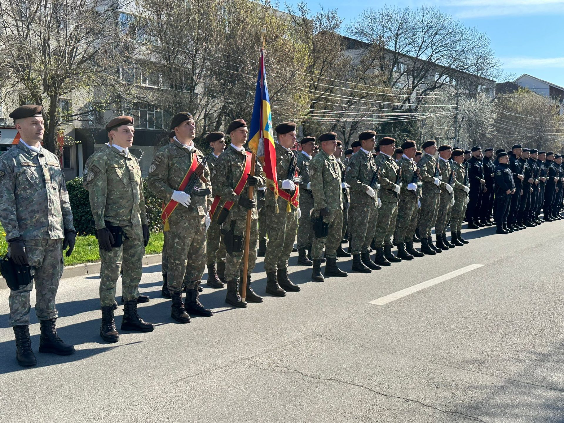 Ceremonia s-a încheiat cu defilarea Gărzii de Onoare, alcătuită din garda drapelului, pompieri, jandarmi și militari, prin fața oficialităților.
