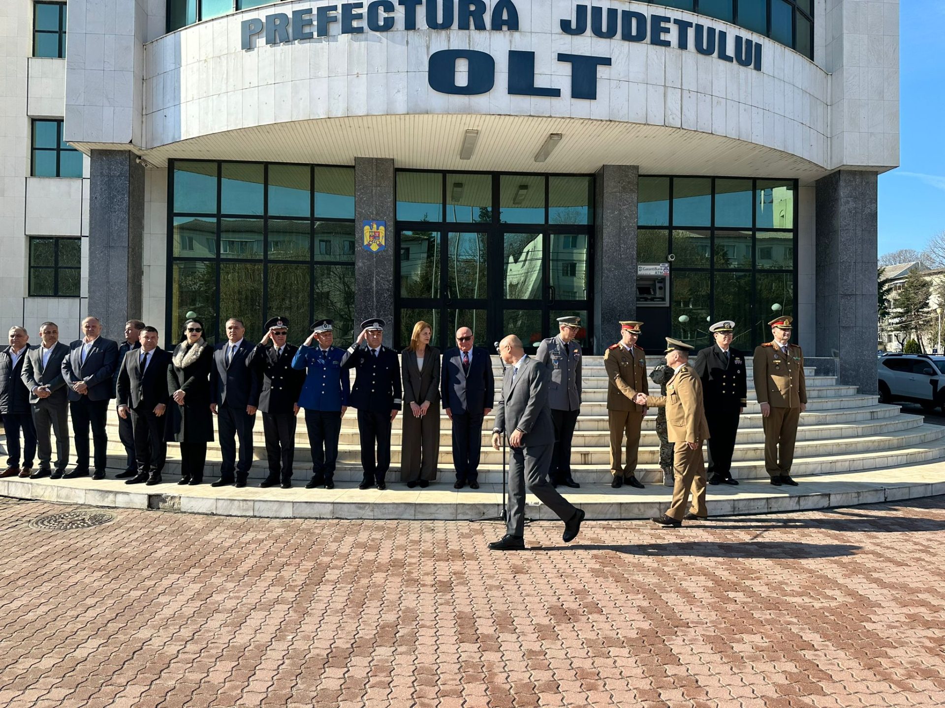 Printre oficialii prezenți s-au aflat prefectul de Olt Emil Albotă, subprefectul Ștefan Nicolae, Ionuț Ivan și Virgil Delureanu, vicepreședinți ai Consiliului Județean Olt, Mădălina Văle, viceprimar al municipiului Slatina, Marius Iancu, deputat PSD de Olt, Liviu Voiculescu, directorul Spitalului de Psihiatrie Cronici Schitu Greci, reprezentanți ai Bazei Militare NATO de la Deveselu, șefi ai instituțiilor Ministerului Afacerilor Interne și Ministerul Apărării Naționale din teritoriu, dar și directori sau alți reprezentanți ai instituțiilor deconcentrate din județ.