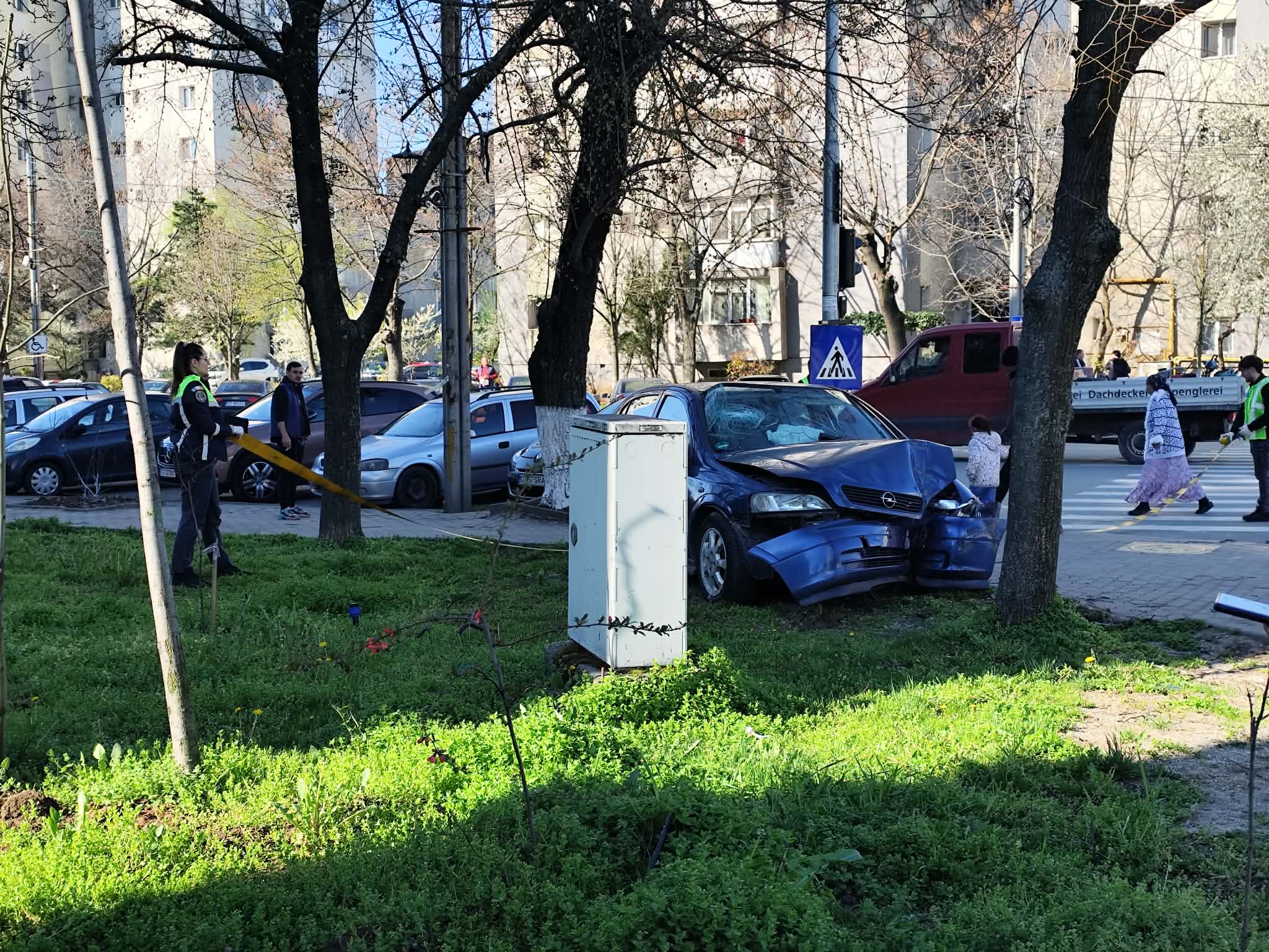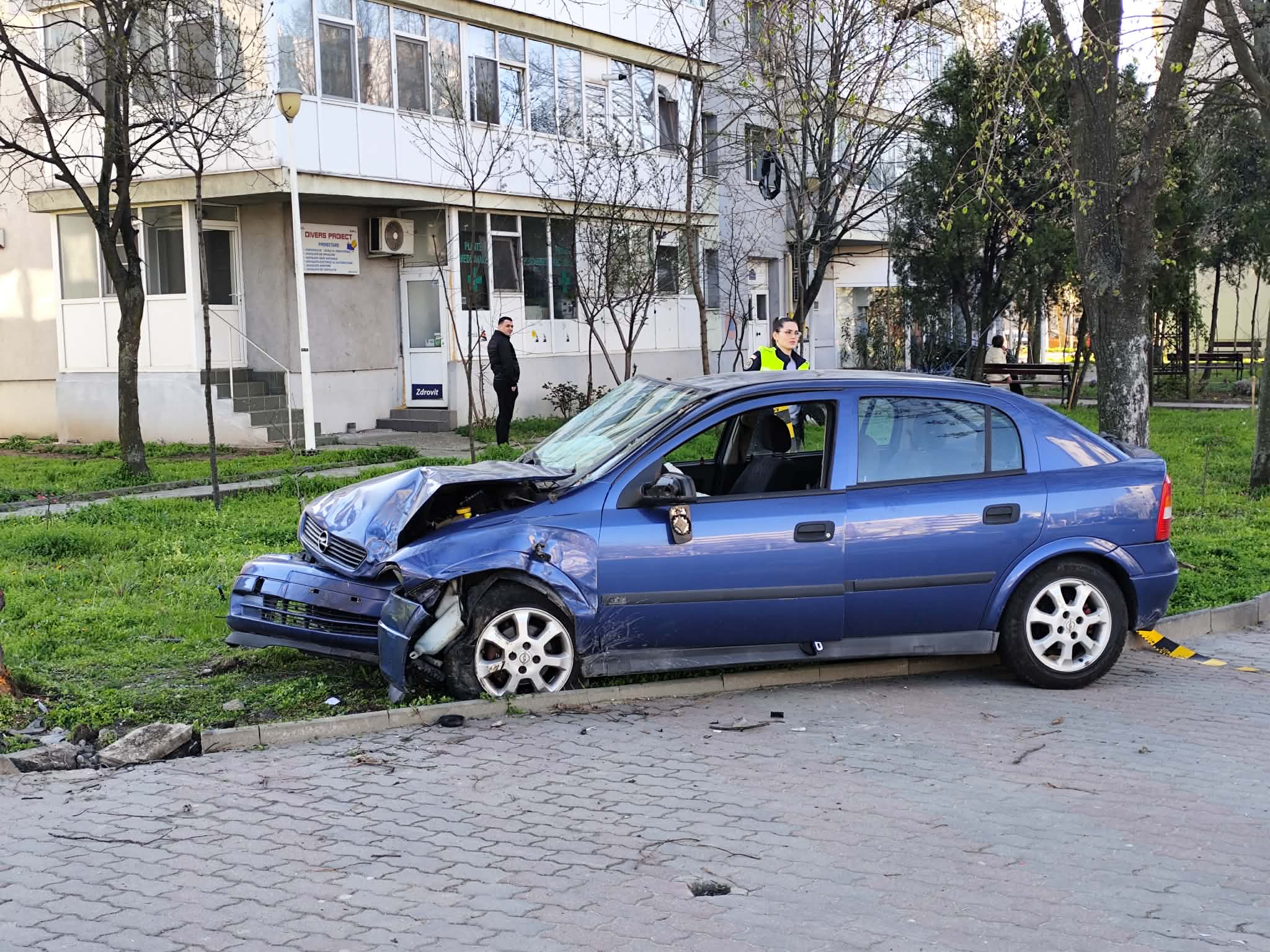 Slatina. Accident rutier în intersecția de la ACR. Unul dintre cele două autoturisme implicate, proiectat într-un copac