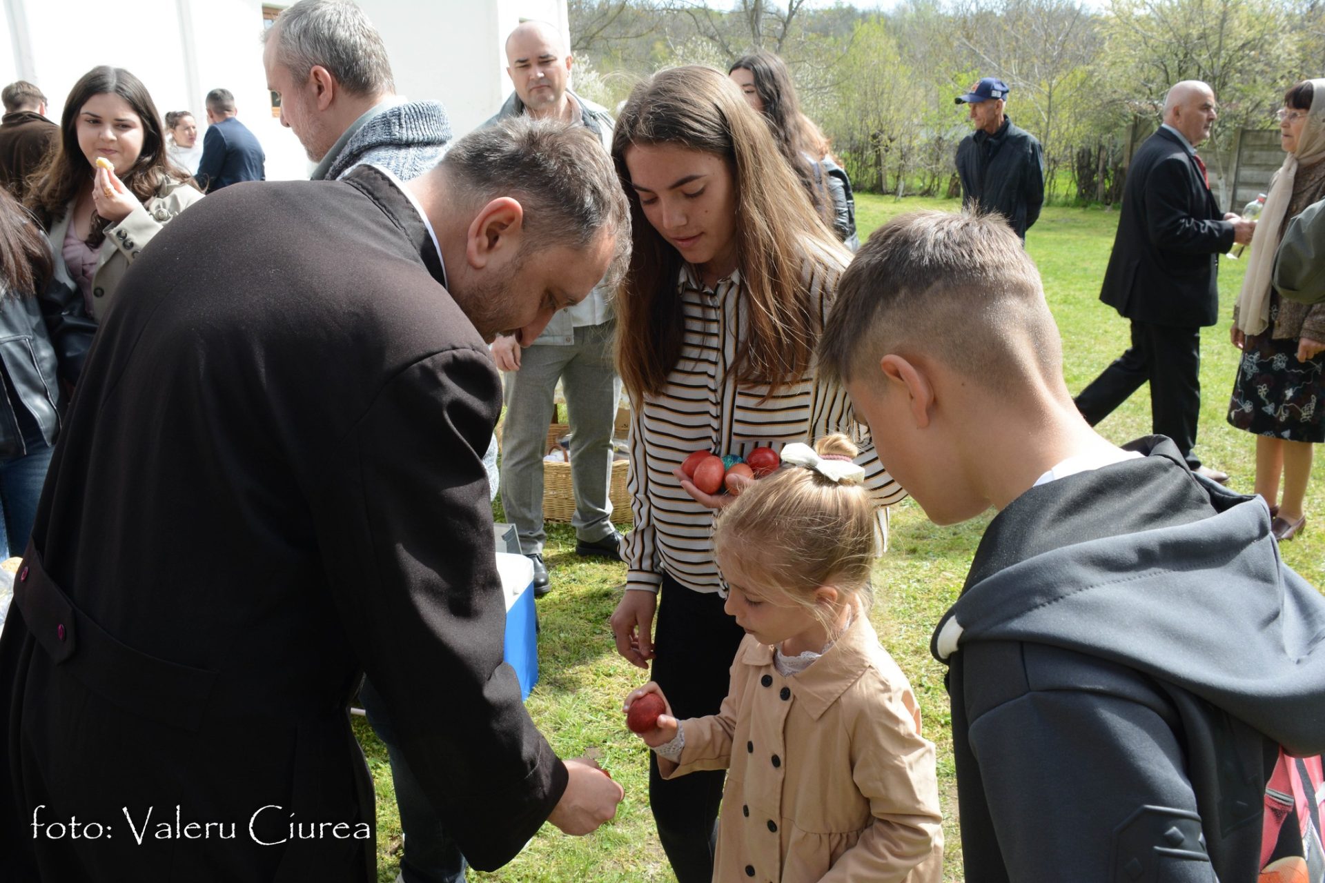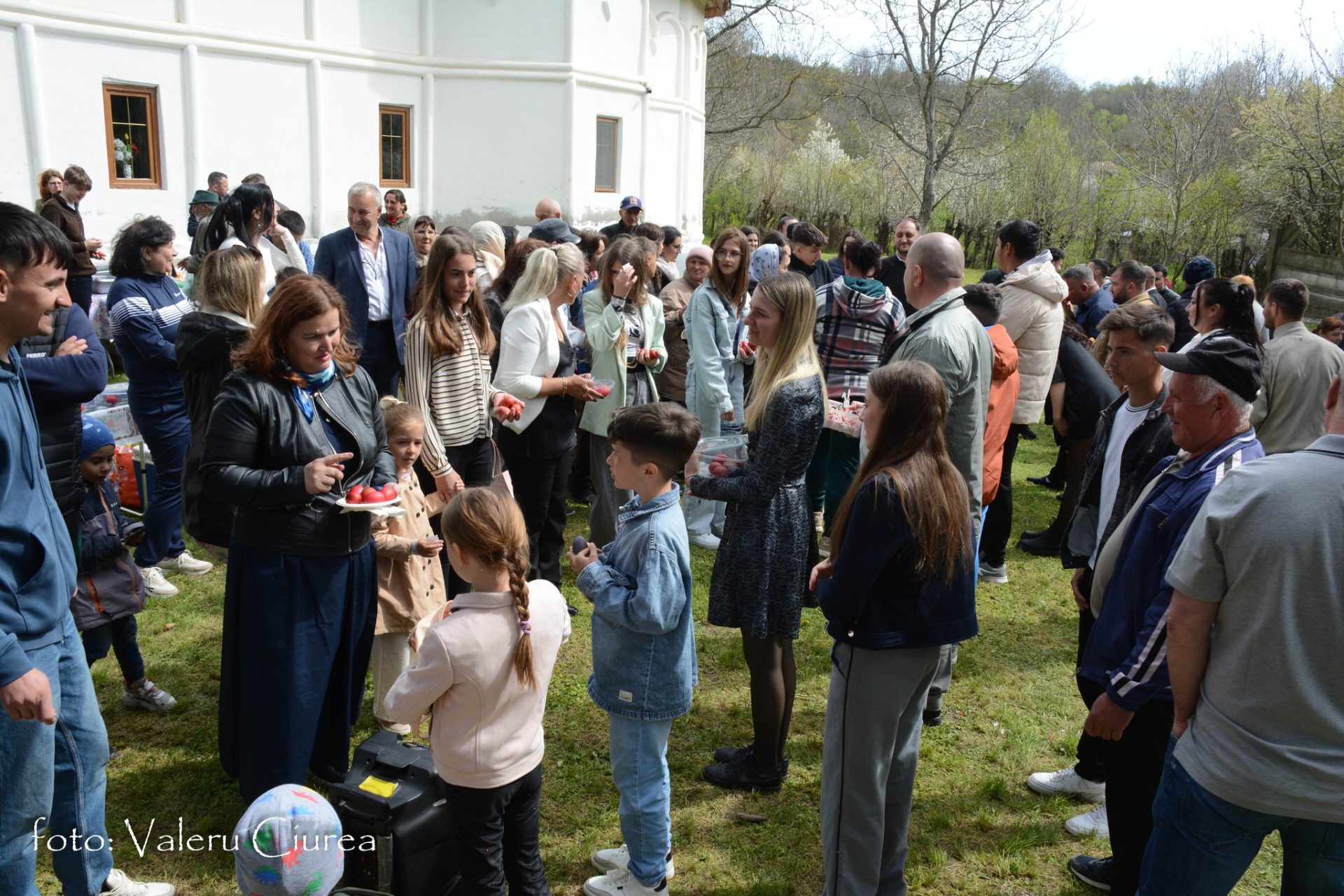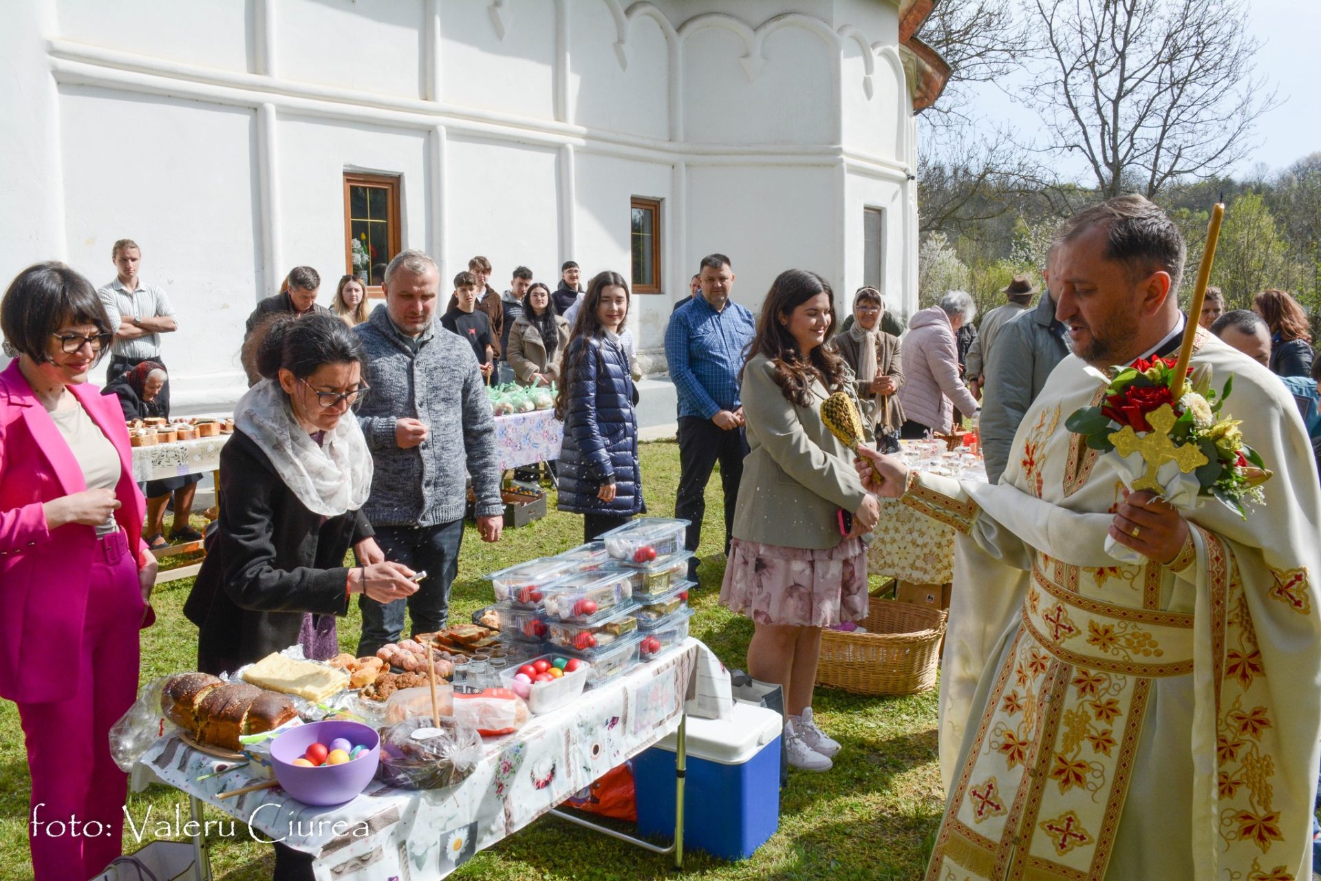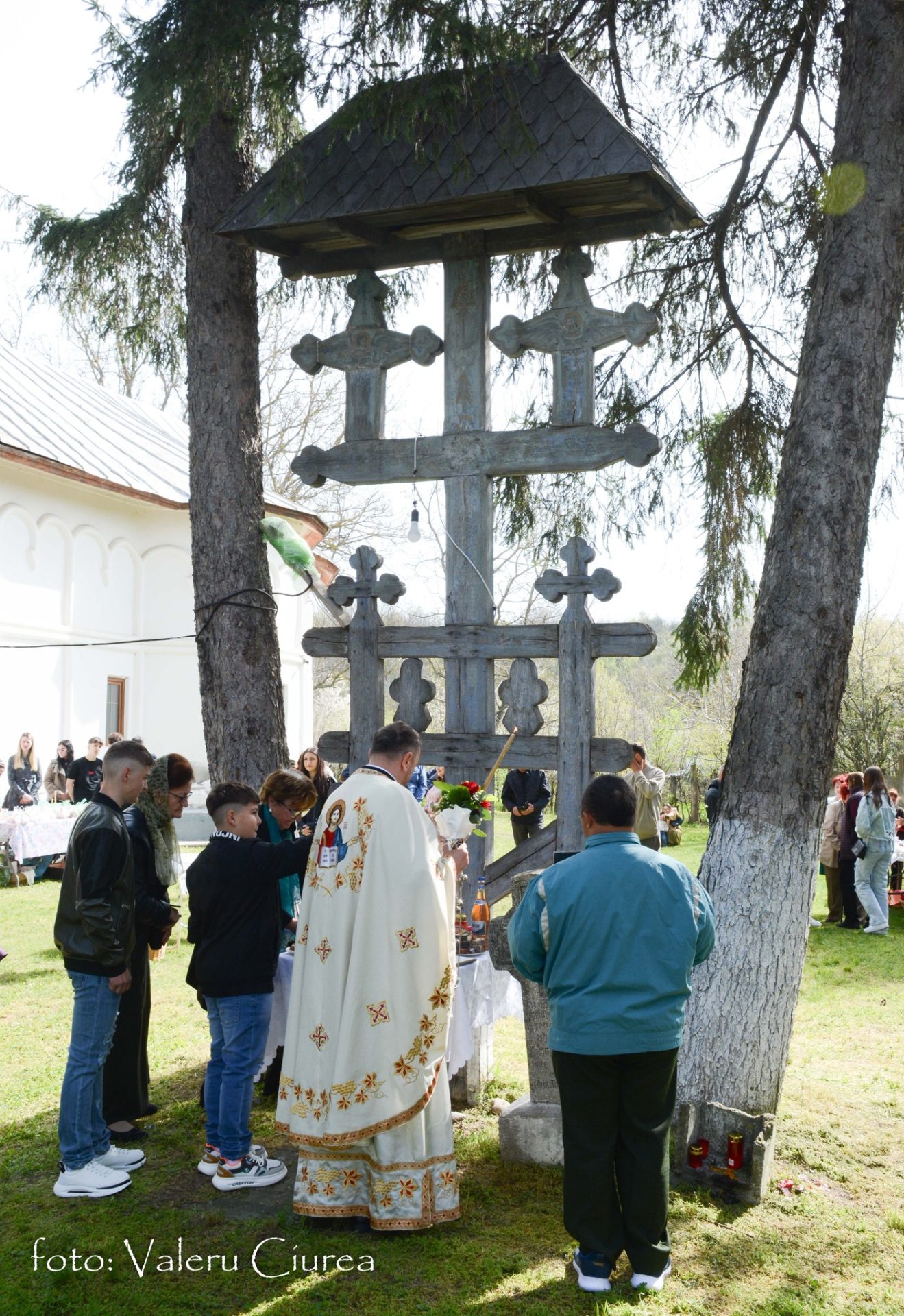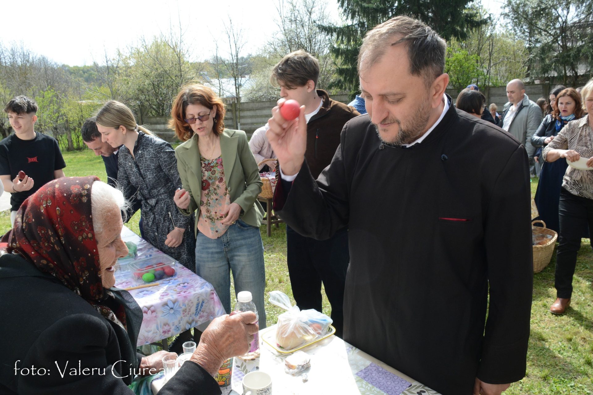 „Pomenirea se face și în dimineața Paștelui și în cea de-a doua zi de Paști, dar numai după ce preotul, după o slujbă specială ținută în fața troiței din curtea bisericii, trece pe la fiecare masă pentru a sfinți bucatele dăruite ca pomană după care ciocnește ouă roșii cu fiecare dintre cei prezenți”, spune Valeru Ciurea.
