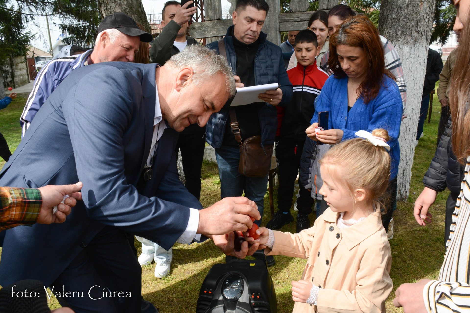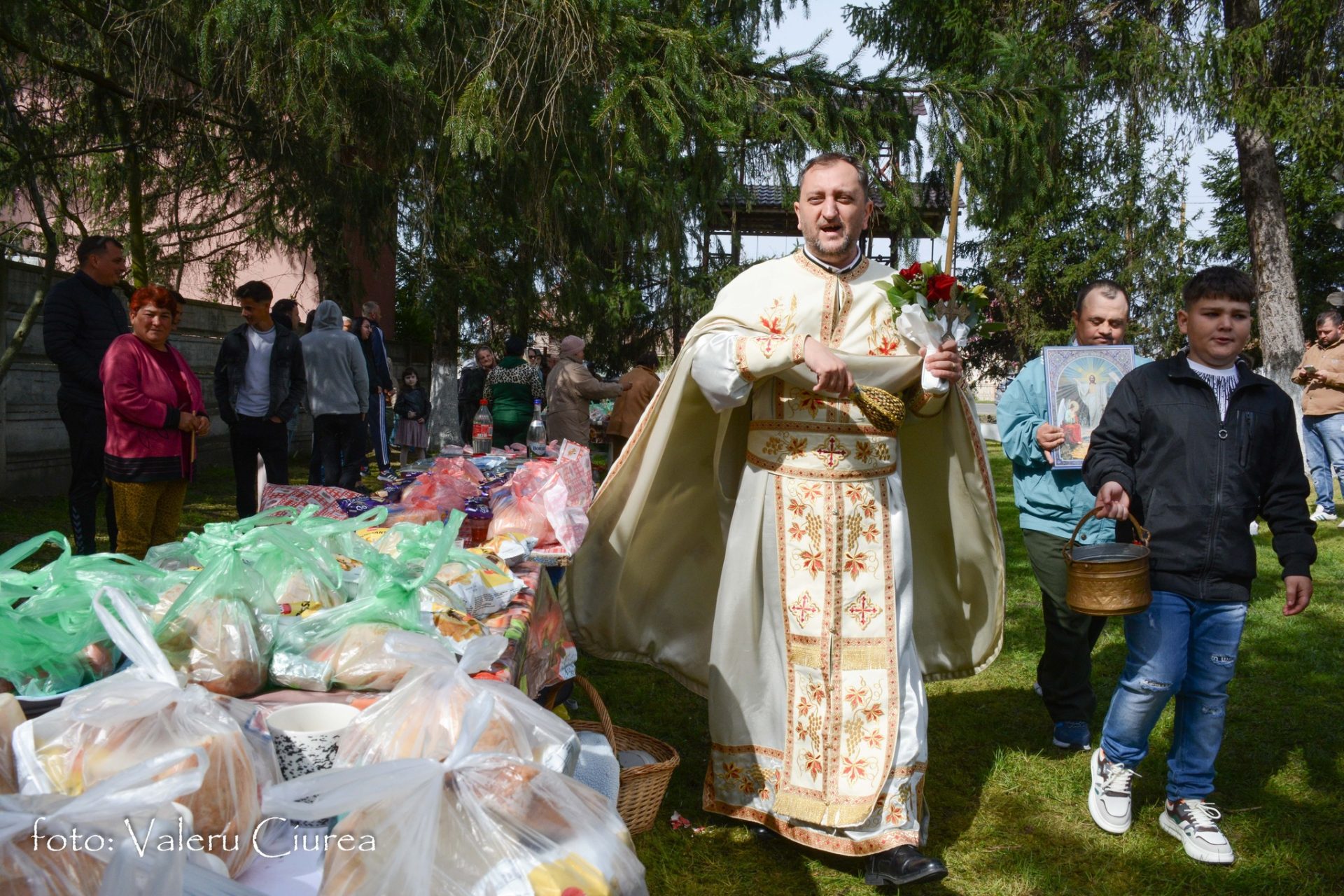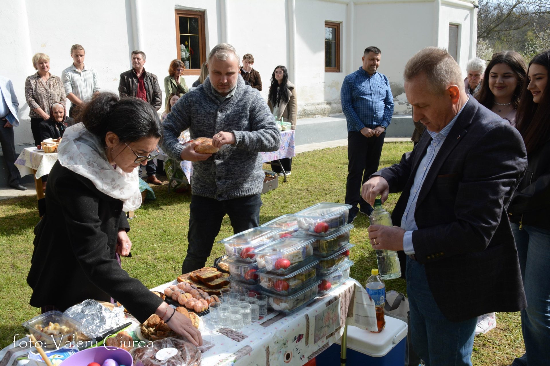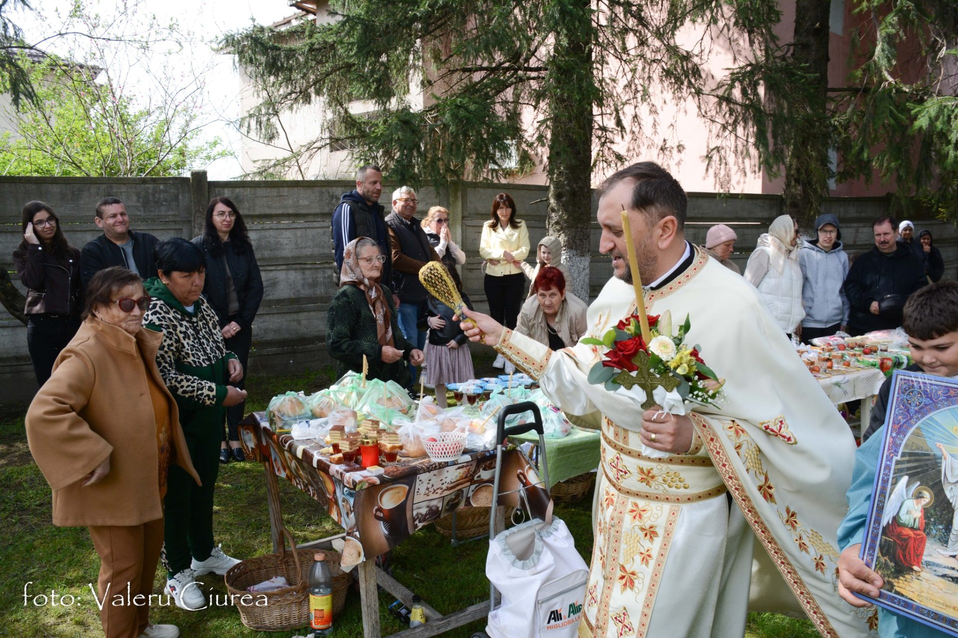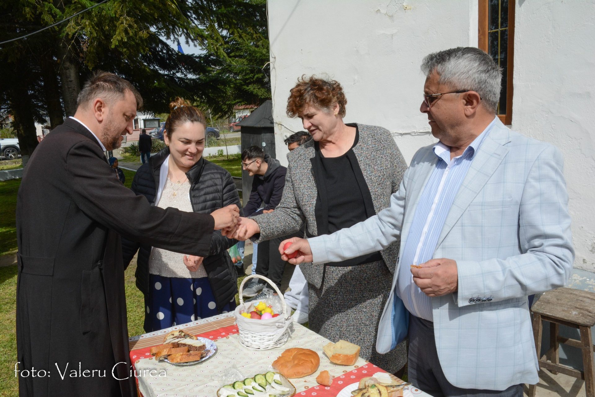 „Pomenirea se face și în dimineața Paștelui și în cea de-a doua zi de Paști, dar numai după ce preotul, după o slujbă specială ținută în fața troiței din curtea bisericii, trece pe la fiecare masă pentru a sfinți bucatele dăruite ca pomană după care ciocnește ouă roșii cu fiecare dintre cei prezenți”, spune Valeru Ciurea.