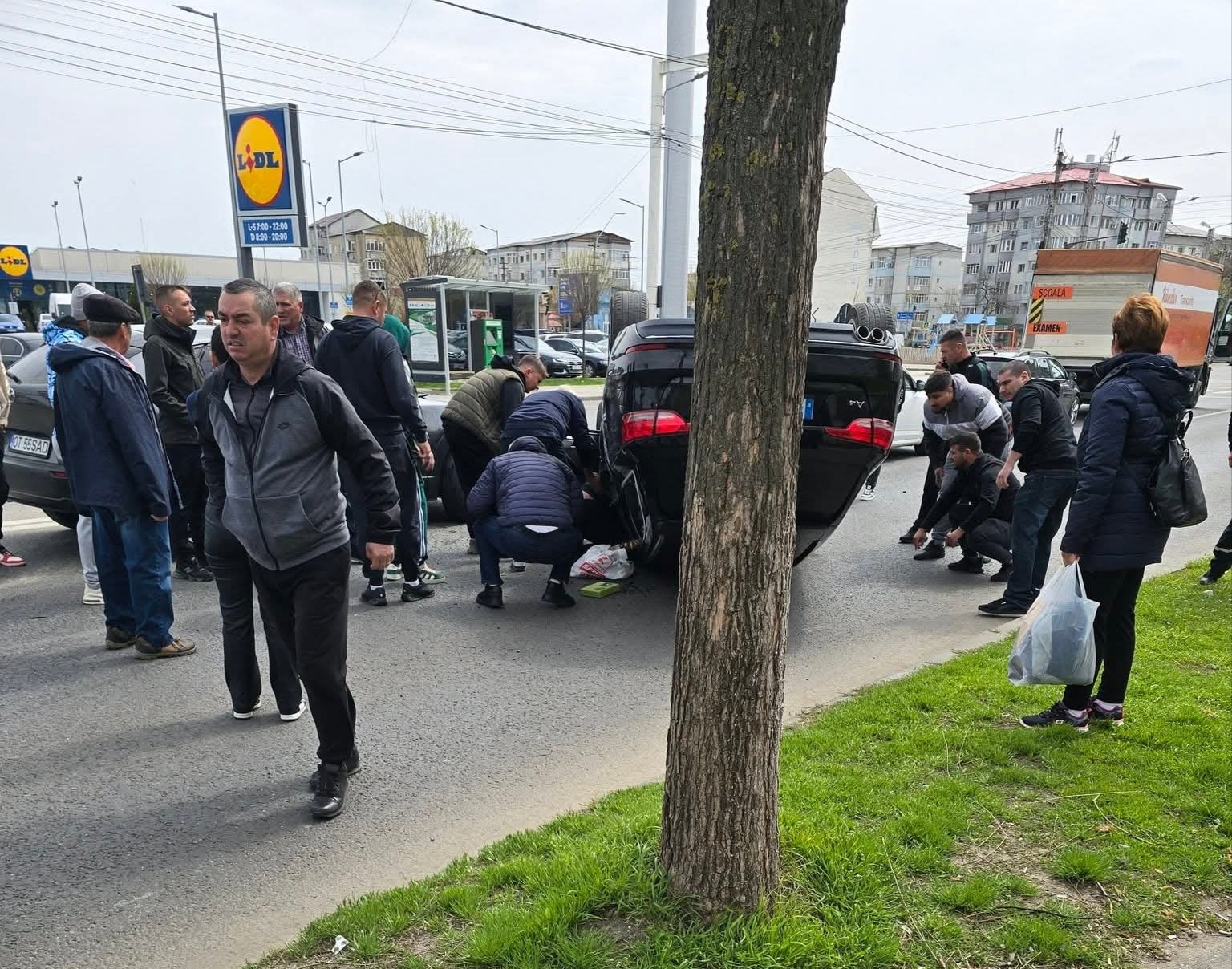 Până la urmă, o persoană a necesitat primul ajutor, respectiv o femeie, șoferița unei mașini ce s-a răsturnat pe carosabil și a rămas pe plafon. Victima a rămas încarcerată între fiarele contorsionate ale autovehiculului.