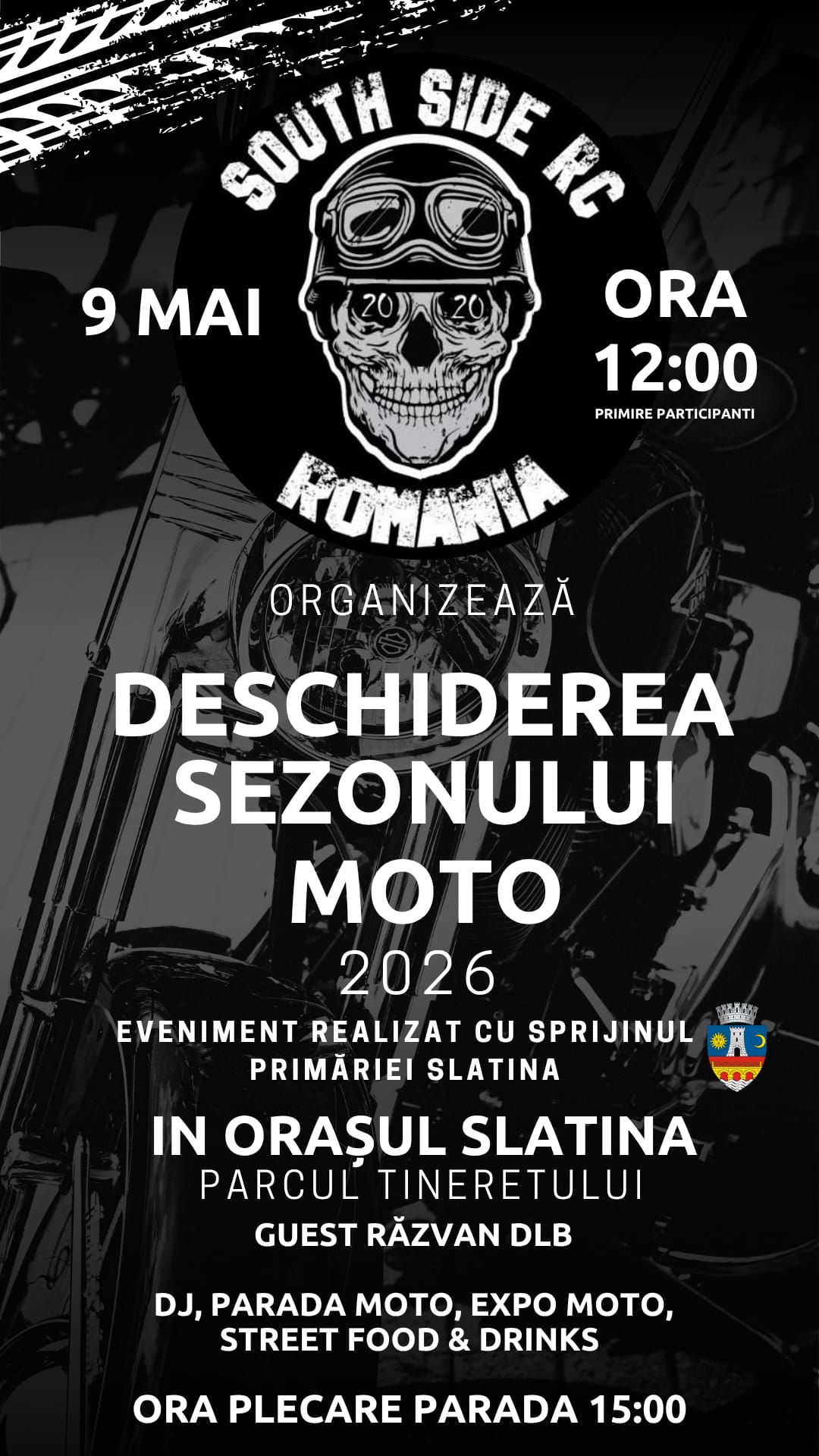 „Așa cum v-am obișnuit în fiecare an, South Side RC Slatina dă startul, în mod simbolic, sezonului moto în oraș. Vă așteptăm într-un număr cât mai mare în Parcul Tineretului, pentru a ne bucura de spiritul pe care evenimentul și-l dorește să îl aducă. Vom avea expunere motociclete, paradă moto, DJ, cadouri pentru cei mici, grătare și tarabe. Ca și program sumar, adunarea motocicliștilor este până la ora 14:00, parada moto între 15:00 și 16:00 și after party după 16:00. Mulțumim Primăriei municipiului Slatina pentru sprijinul acordat în organizarea evenimentului”, transmit organizatorii.